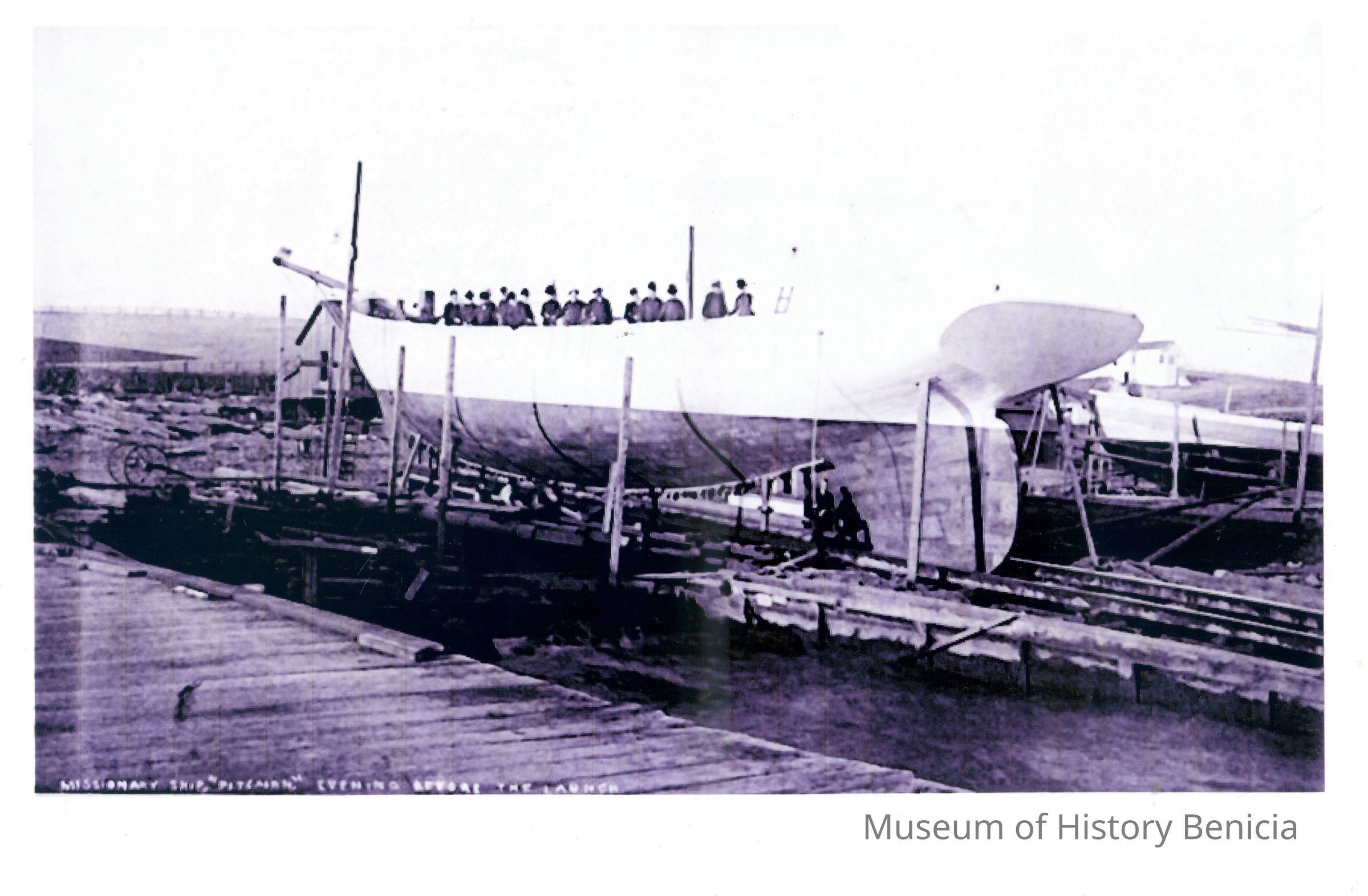 Missionary schooner "Pitcairn" on July 27 ,1890, the evening before the dry launch.
