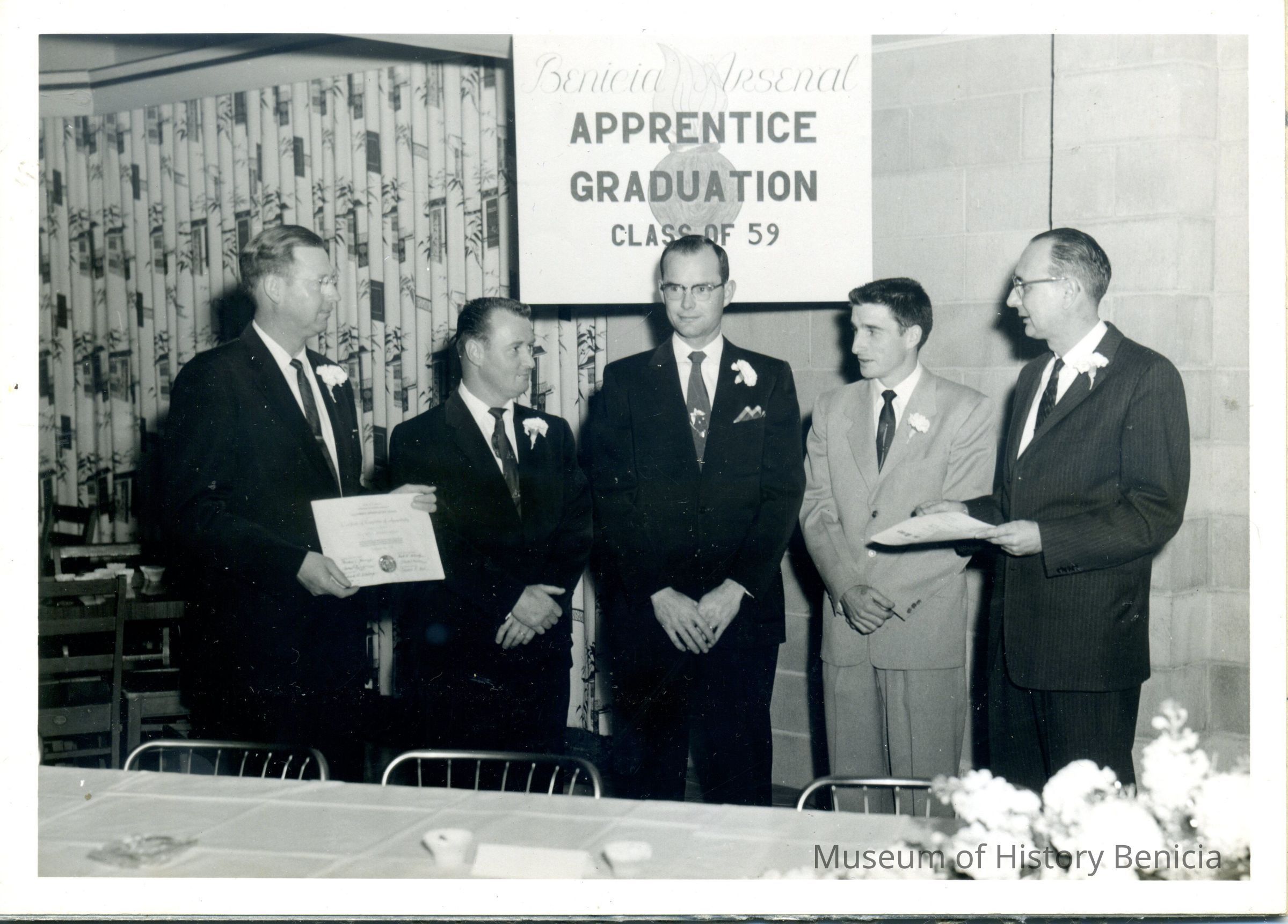 Photograph of graduation ceremony 1959 of Apprentices.
