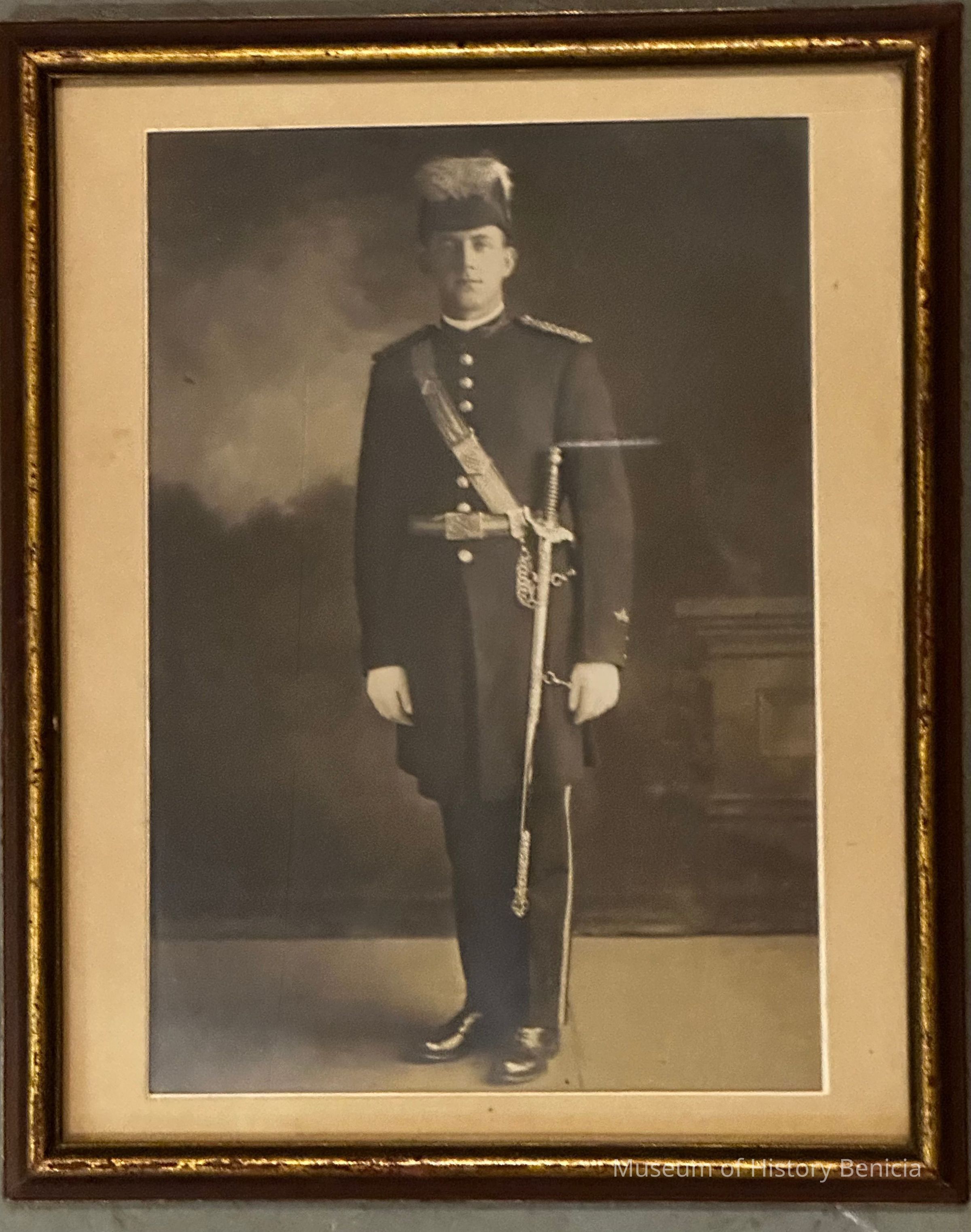 Framed photo of a man in a Knights of Columbus uniform.