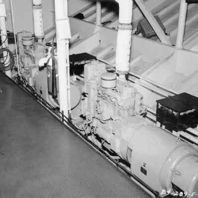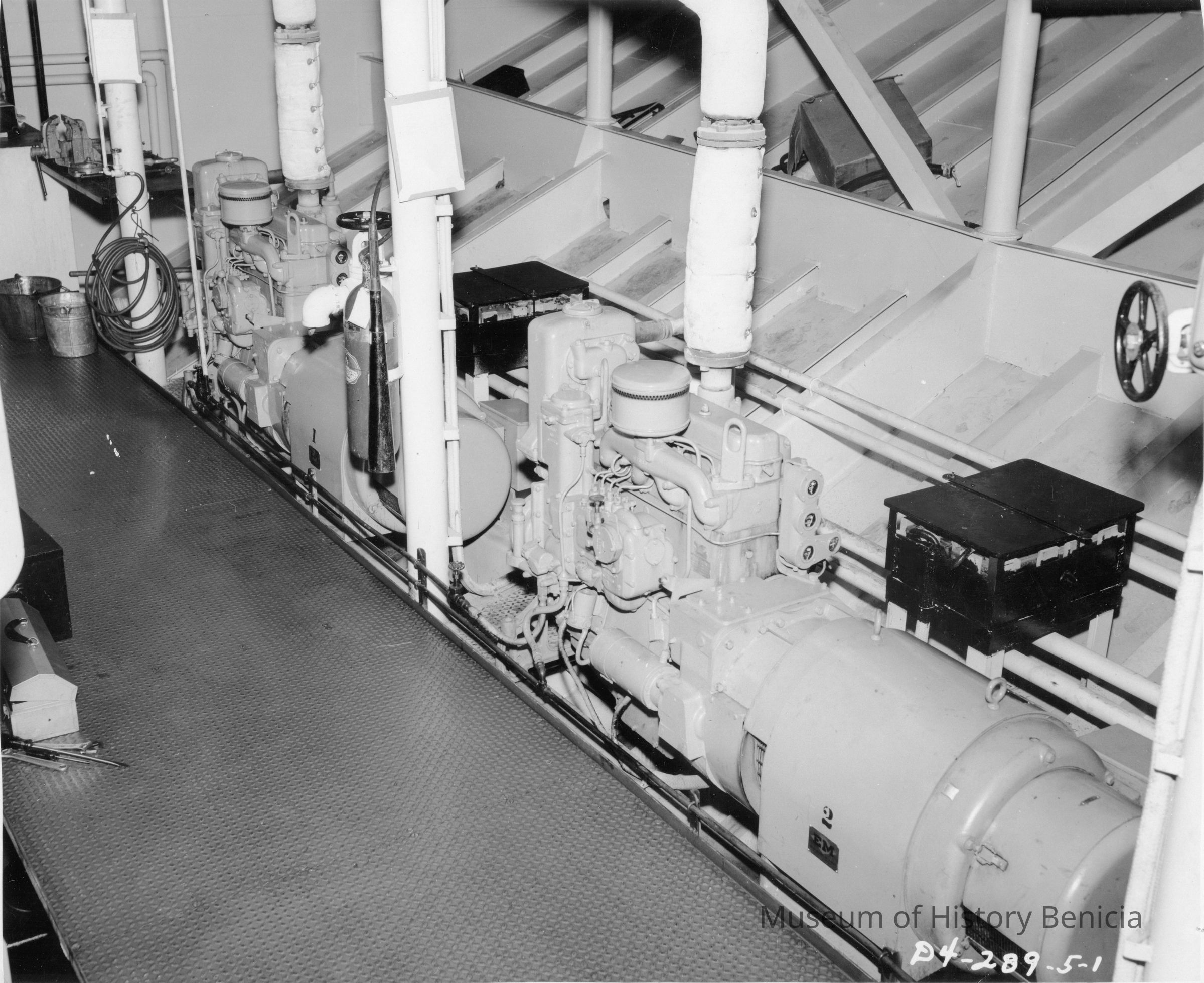 B&W photo of machine from one of the Benicia-Martinez ferry boats. On the back it says "Property of Mrs. Coco." and "believed to be a mechanisim belonging to one of the Benicia-Martinez ferry boats. Mr John Coco was a captain of the B-M ferry."Collection