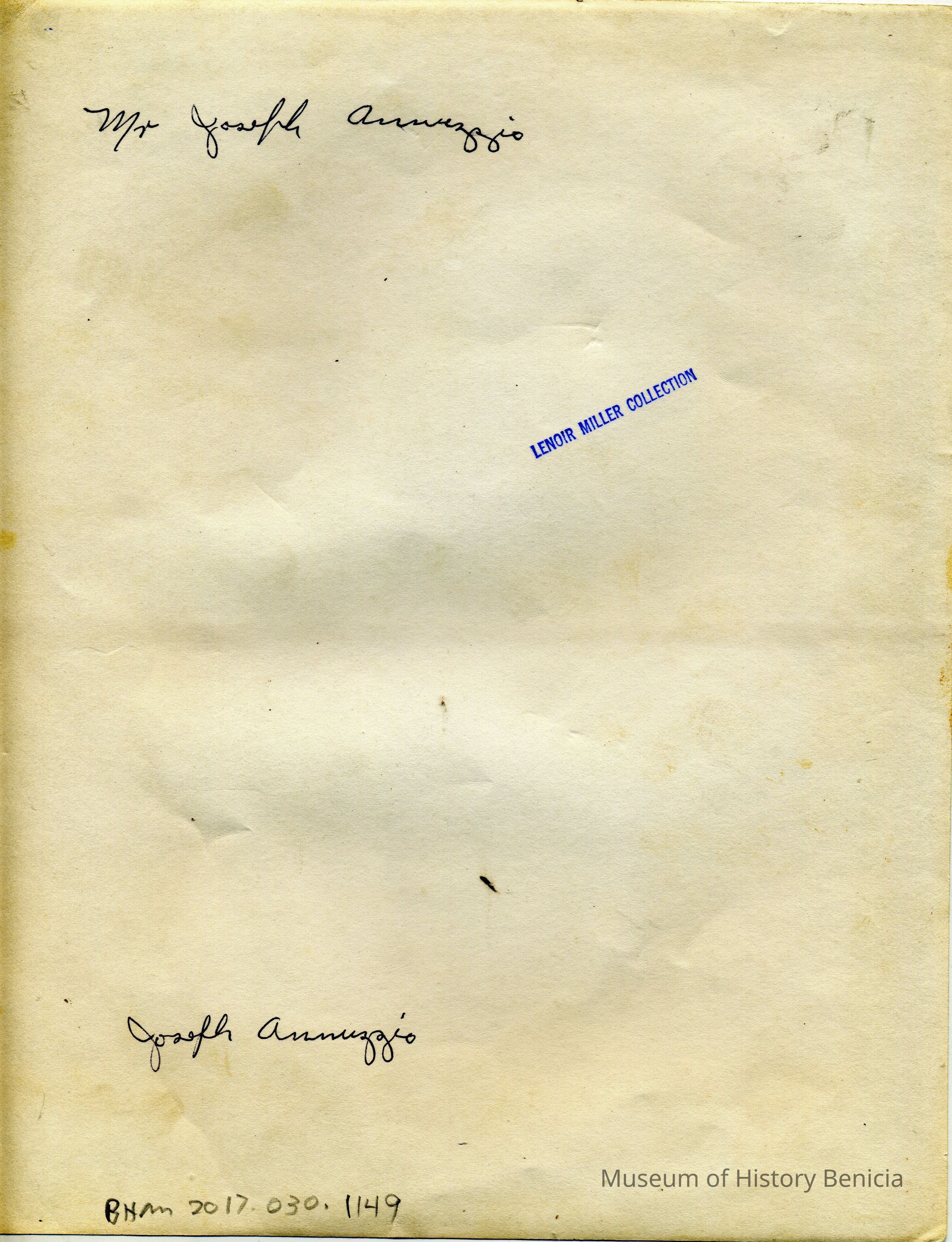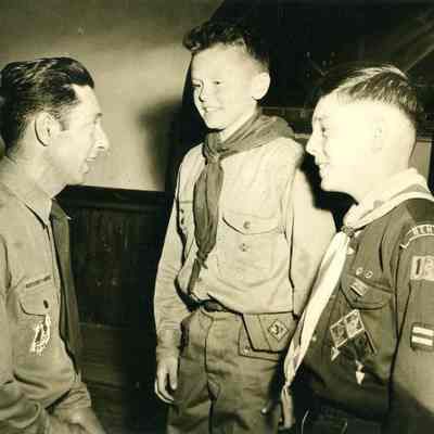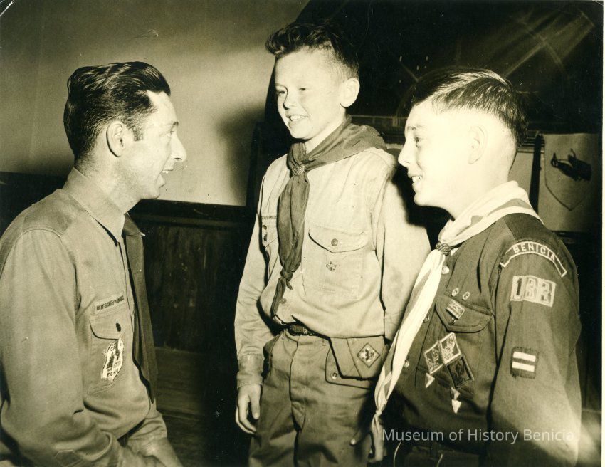 This is a photo of Joseph Annuzzio and two young scouts from Benicia. We have another photo in the Museum collection showing Joseph Annuzzio when he was a scout.Collection