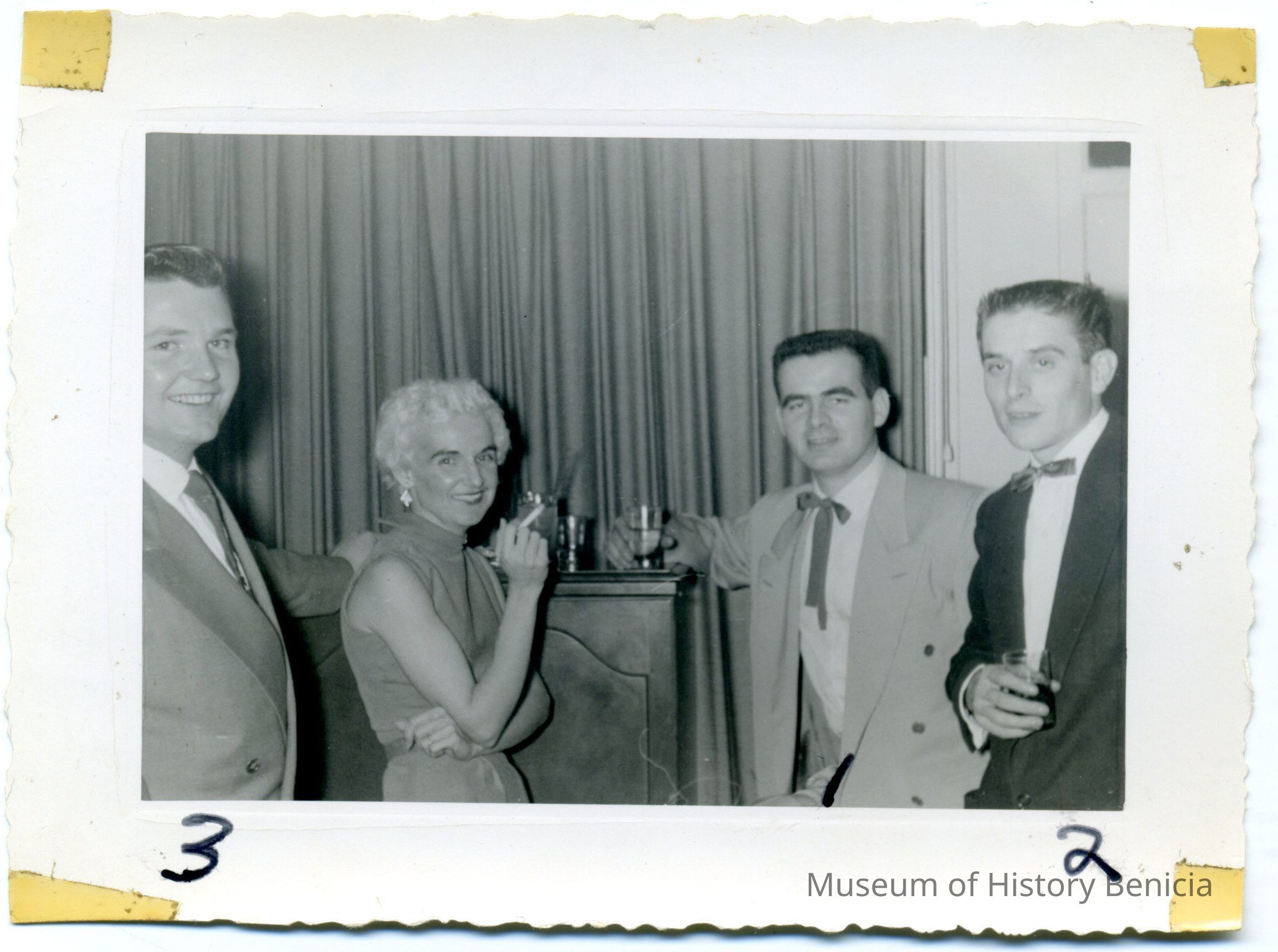 Photograph of four people at 1956 apprentice graduation ceremony.