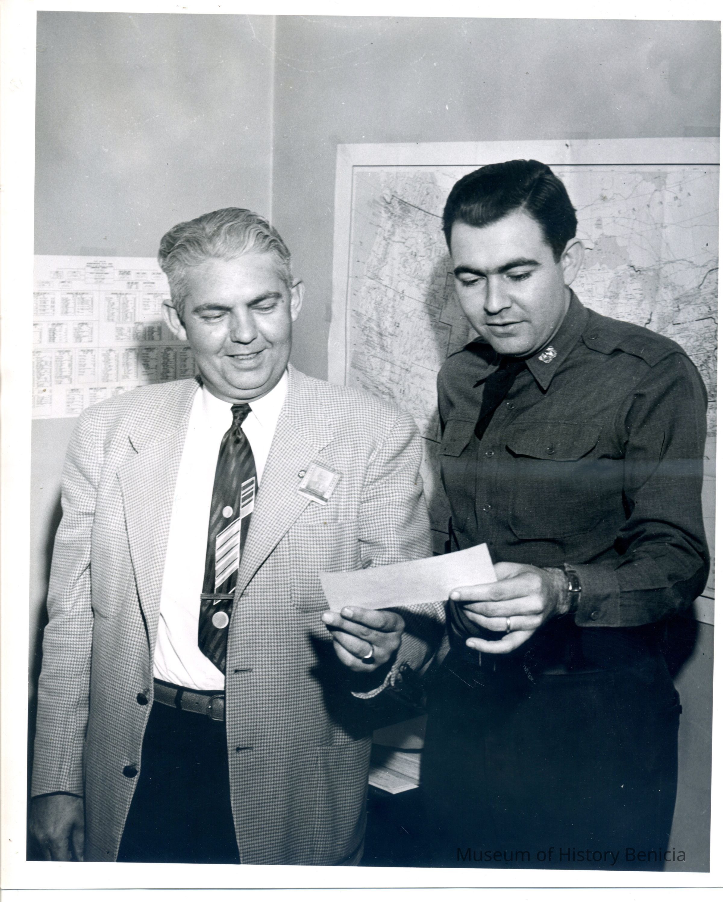 Photograph of J. Walter Kamb with unidentified man. c1957 US Army Photograph