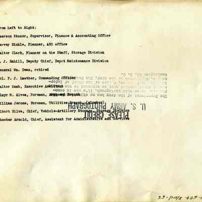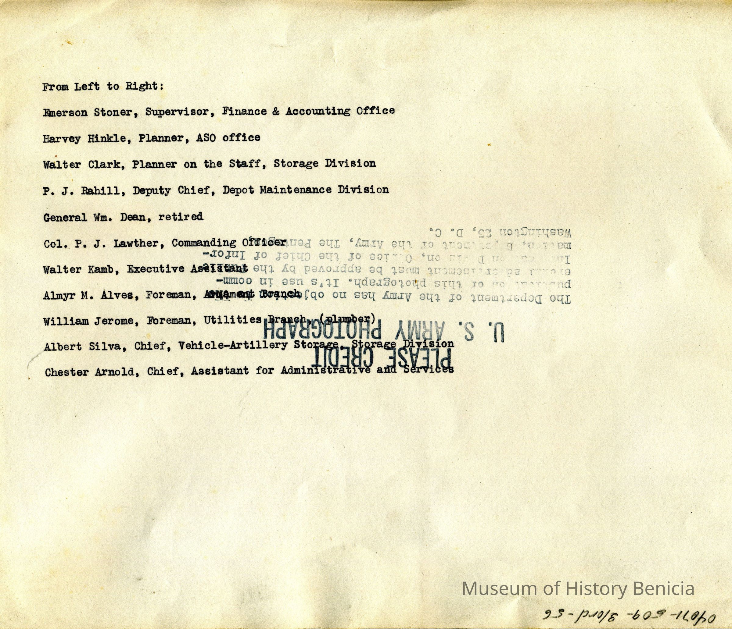 This is a photo of civilian executives at the Benicia Arsenal possibly taken in 1956. Listed on the back are the names: