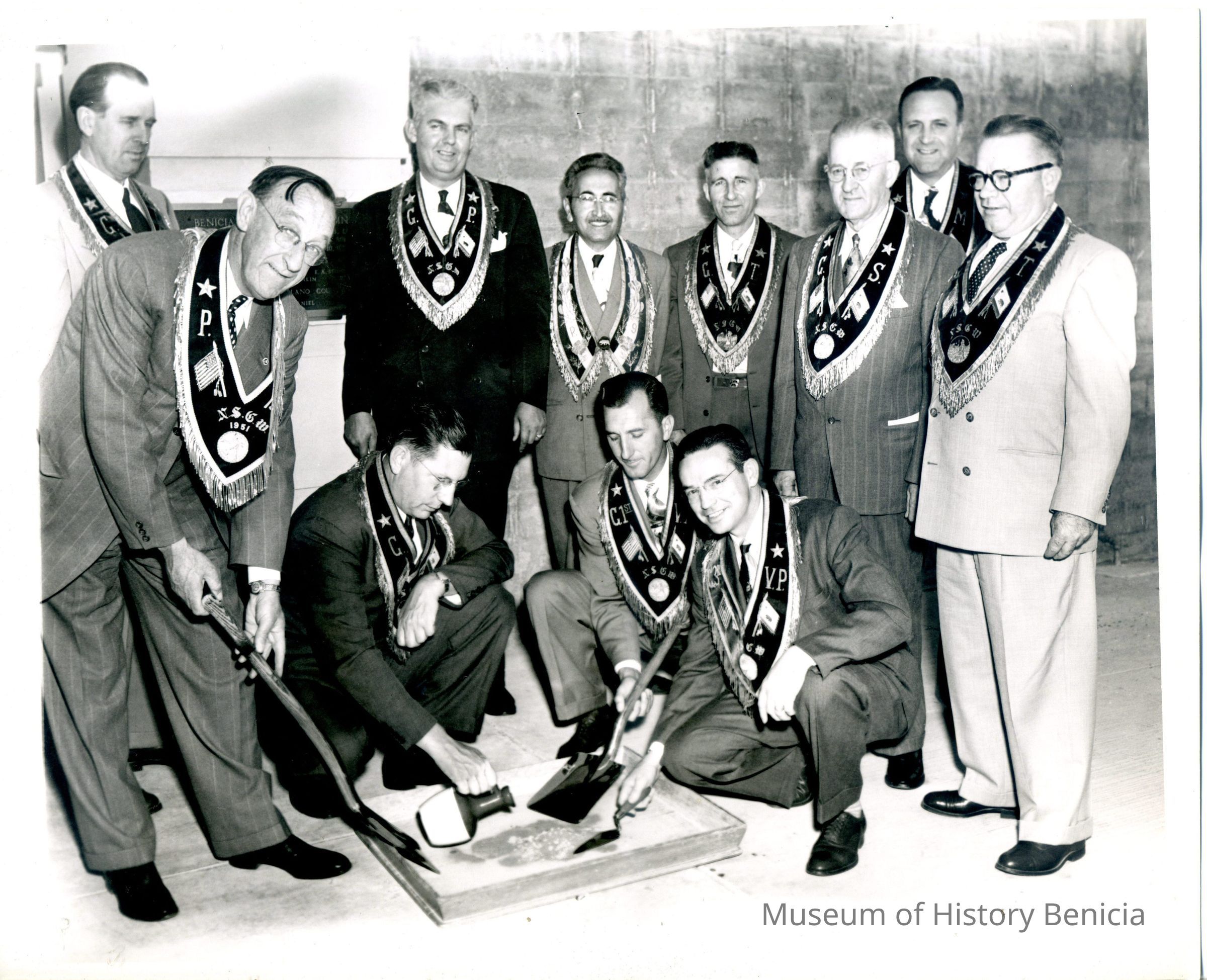 Photograph of J. Walter Kamb, assistant to the commanding officer, 1952. Shown here with his Native Sons of the Golden West group.