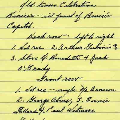 This is a photo of men celebrating the Old Timers festival. They are sitting on the steps of the Old State Capitol. They are: