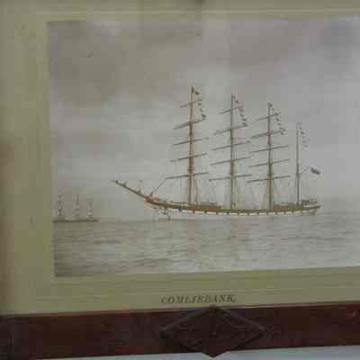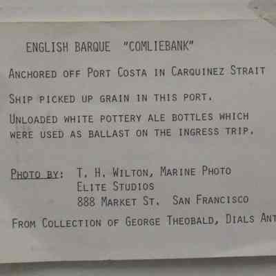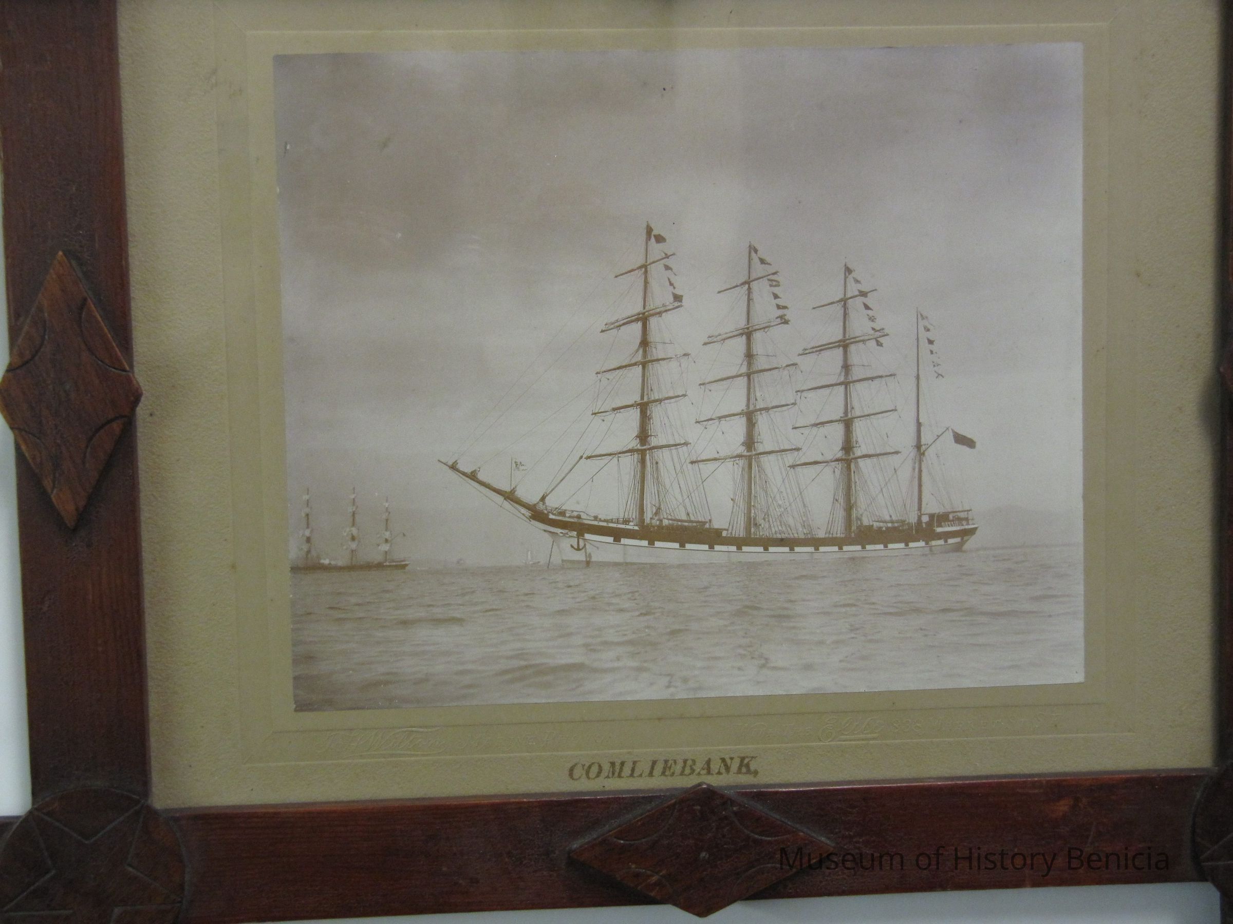 Photograph: English Barque "Comliebank" at anchorage with Port Costa in background.