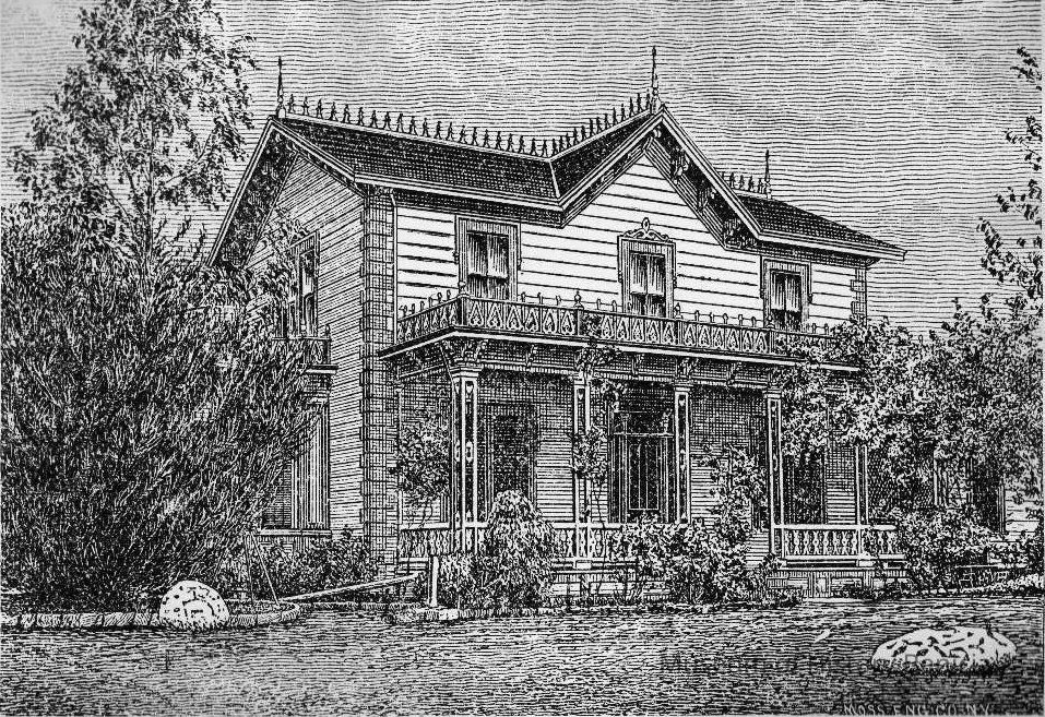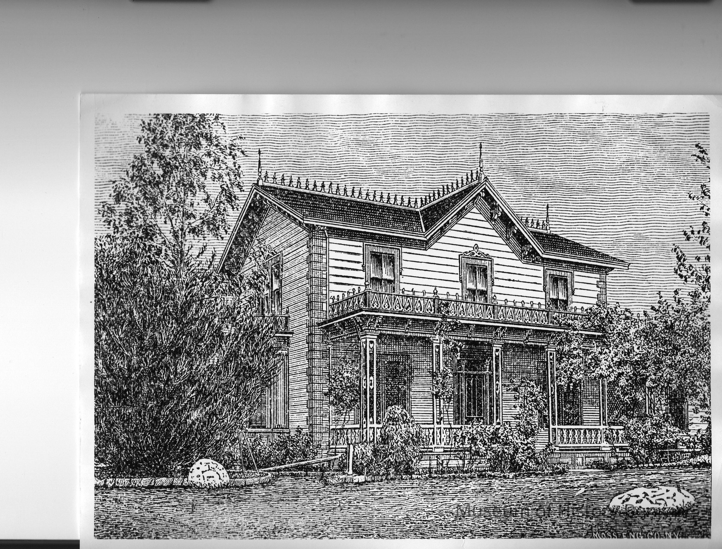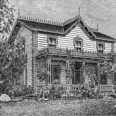 B/W photo of engraving of Bishop Wingfield's residence at St. Augustine's College. Photo appears on page 16 of Bruegmann book, Benicia, A Portrait of an Early California Town.