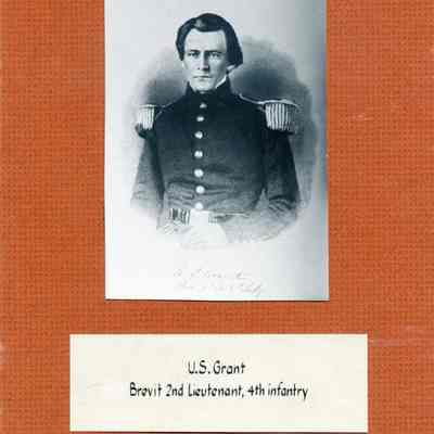 Photo of a drawing of young U.S. Grant. It is mounted on cardboard and has a label below.