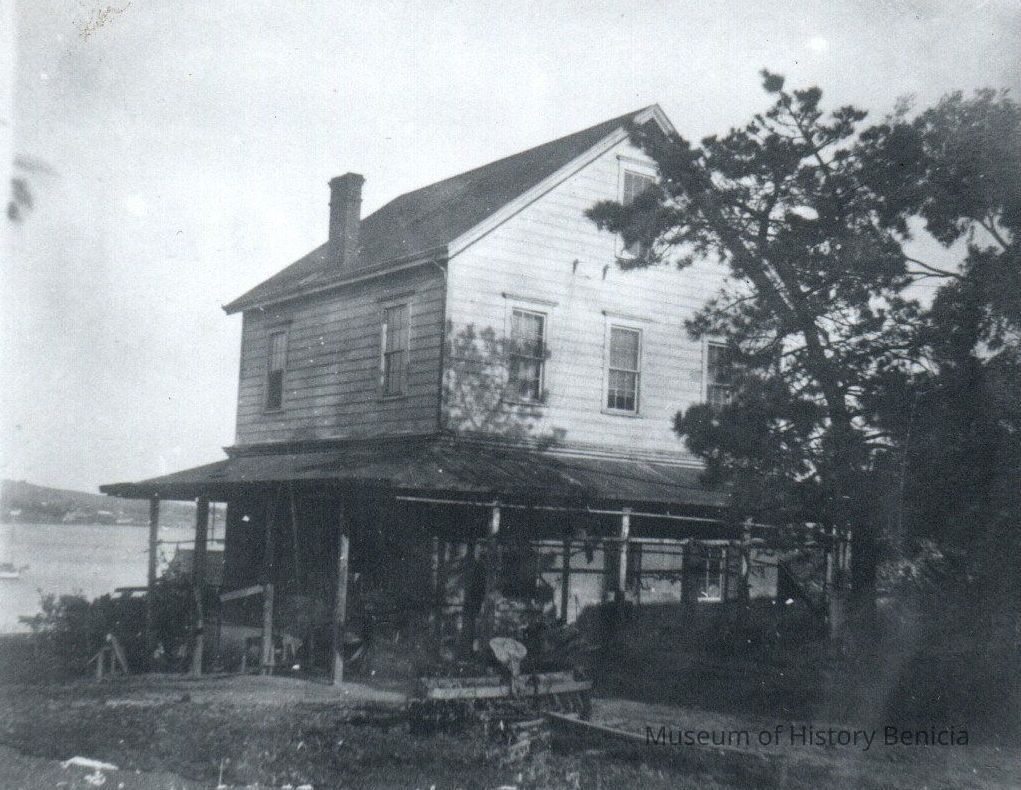 B/W Photograph of a photograph; the date of the original photograph is unknown. It is an image of the Patrick Dillon home on what is now the Benicia State Recreation Area land.Collection