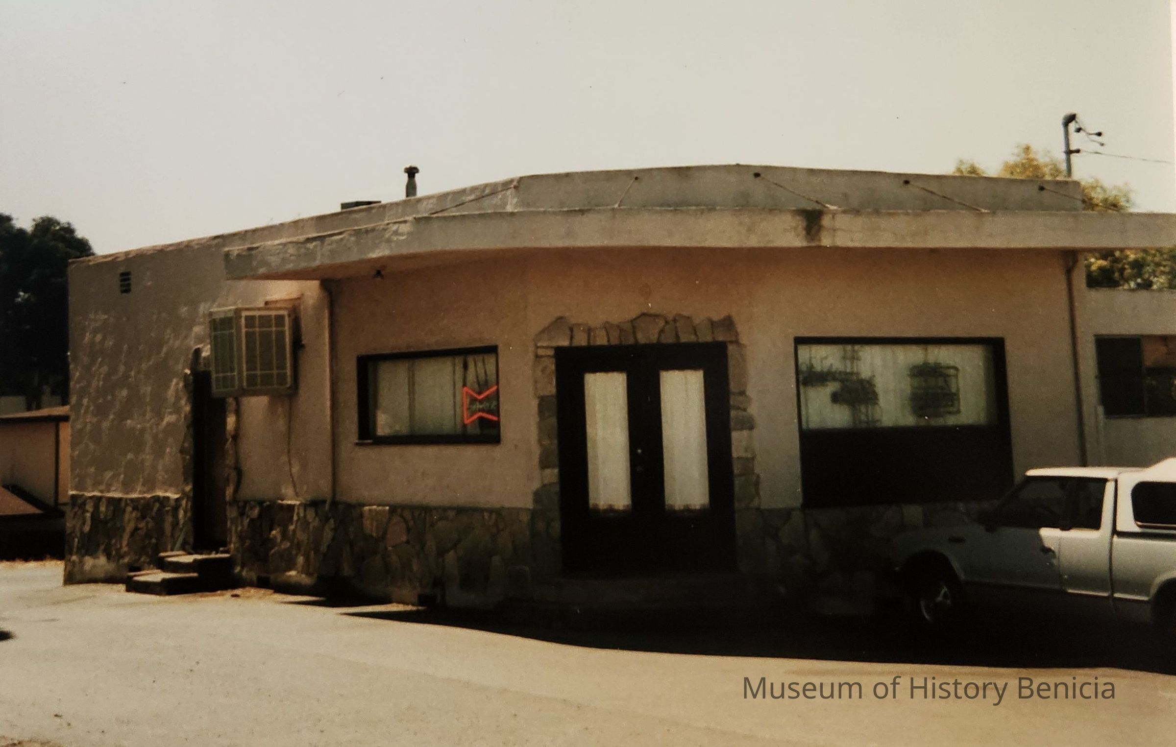 The original bar, which the current owners purchased in 1942, on the site burned in 1960. The present (1986) building was moved from Lemon Street, Vallejo. It is said to have been a 1917 era grocery store, which the Marvin's (owners) redid completely with stucco and all on this site.Collection