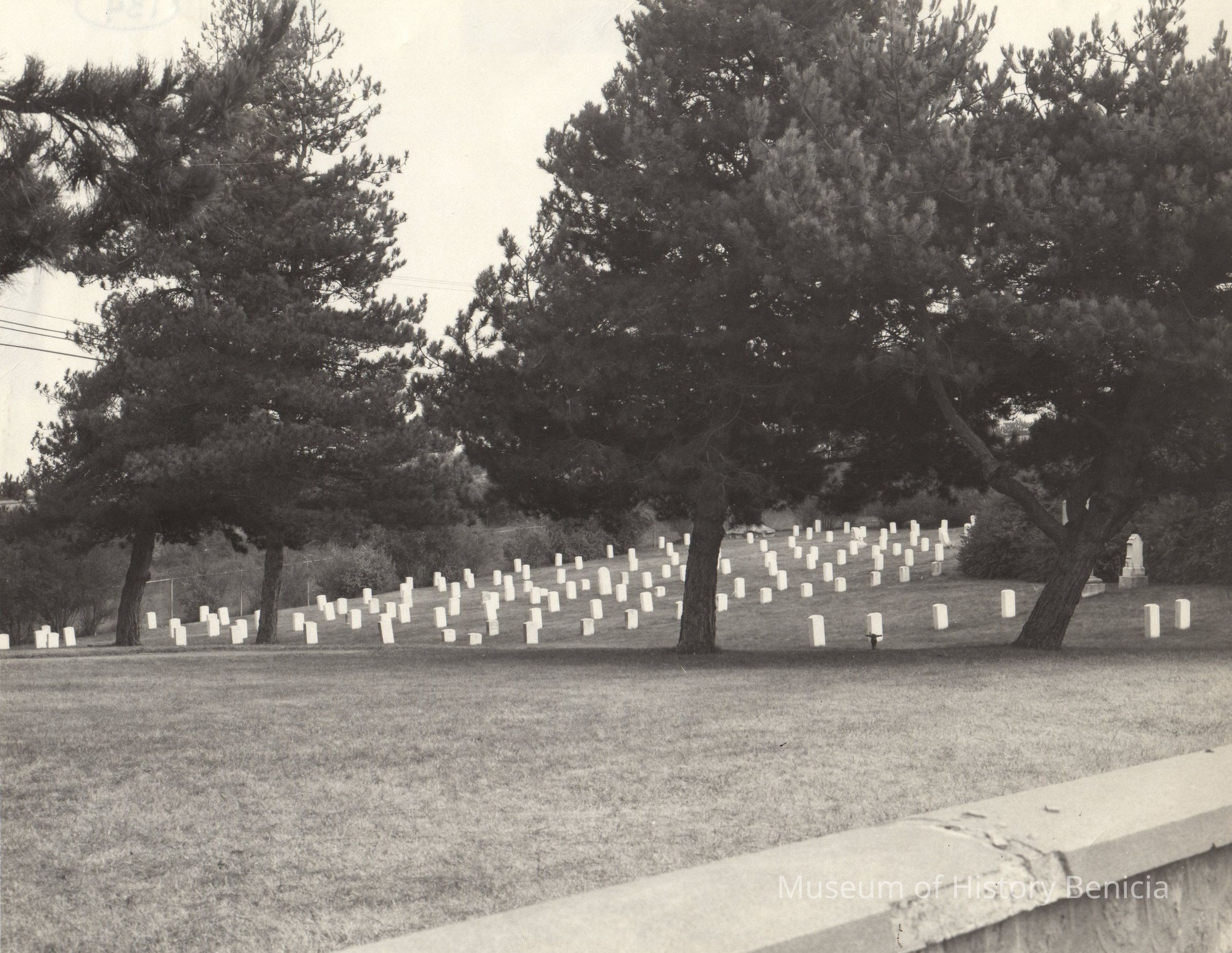 B/W photo of oldest post cemetery in Benicia Arsenal.