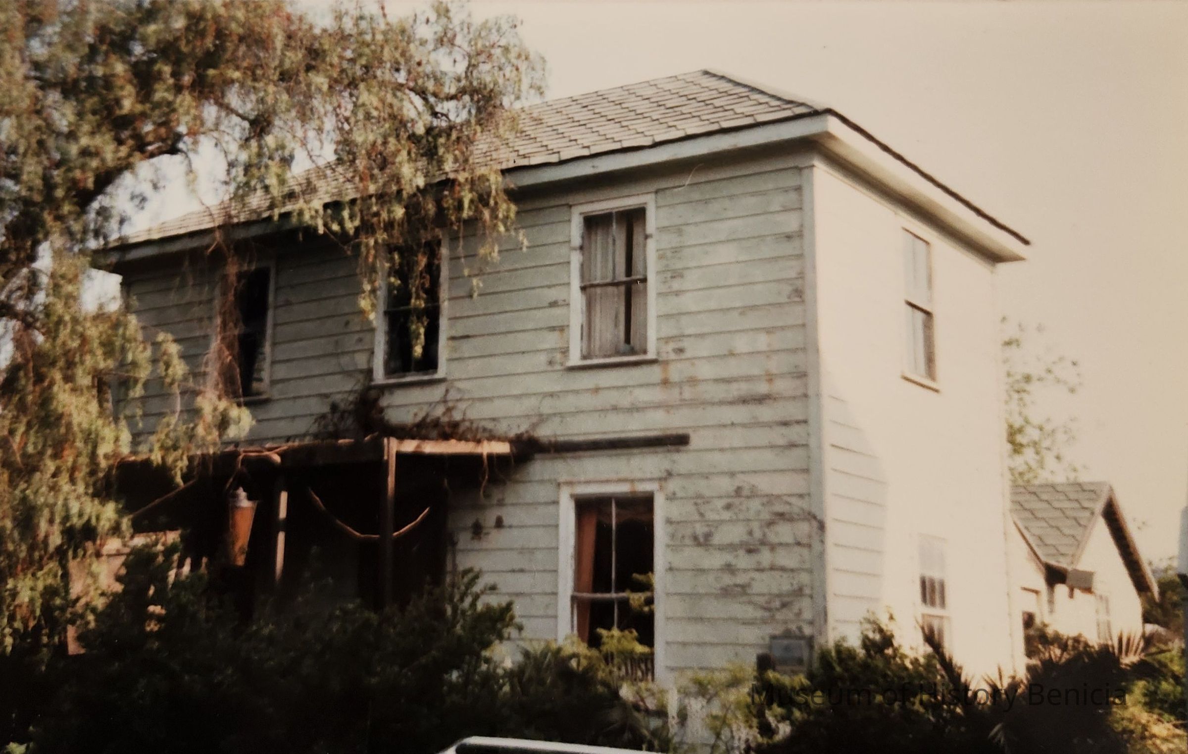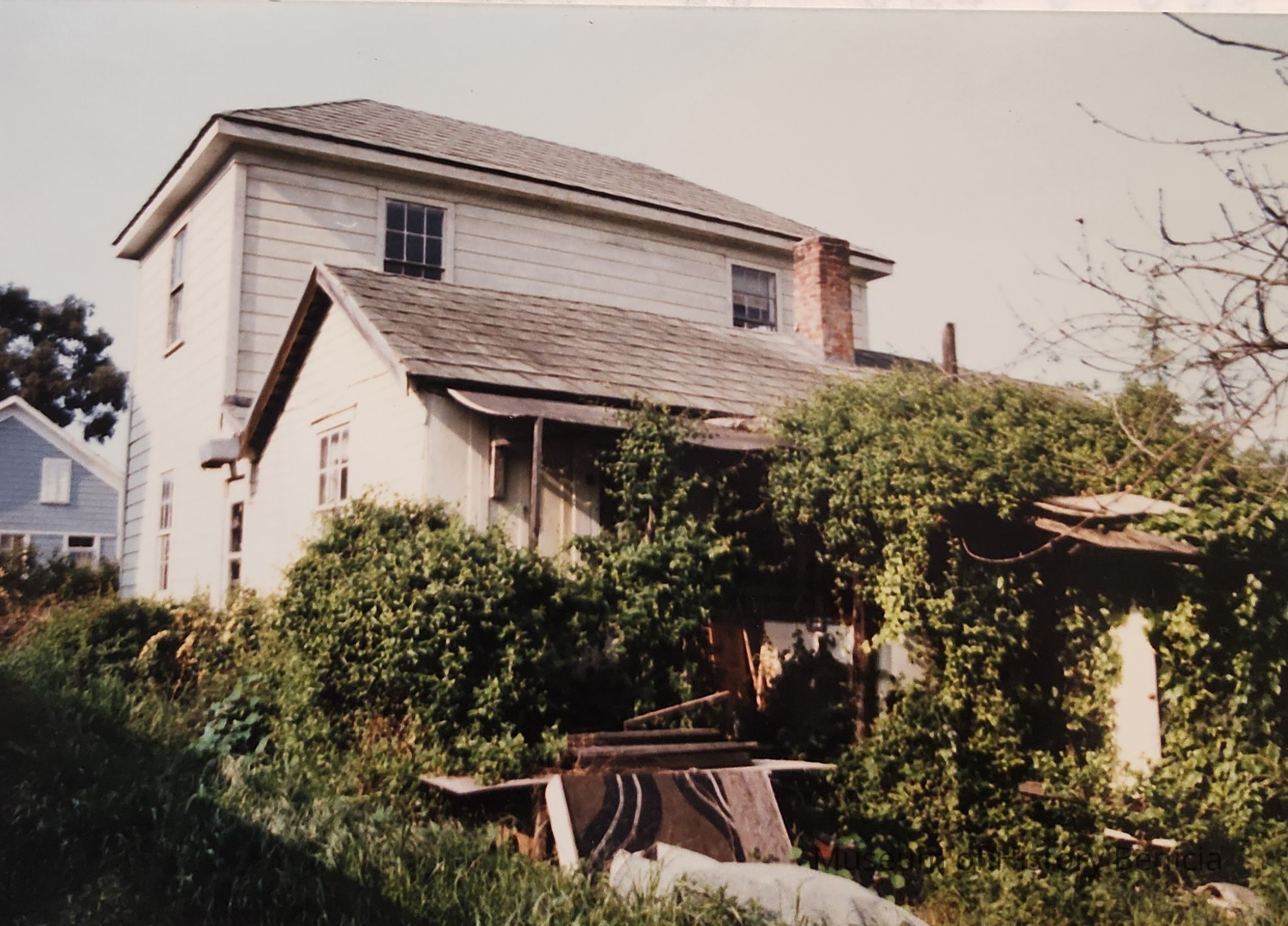 It is known that a structure did exist on this site in the early 1850's. In July 1867 the corner hotel and "the house behind it" were destroyed by fire. In 1868 the owner sold the lots to D. N. Hastings. Mr. Hastings rebuilt the hotel in its current location. It is uknown as to whether he rebuilt the house, moved another one in to replace it or whether the house now on site was even the one that burned. Because some lot lines have been changed it is indistinct as to whether the building now known as "The What-Not-Shop" was "the house behind the hotel" or an entirely different house beyond the one which burned. What is known is that the building is built in the style of the earliest homes in Benicia, and that it either was built or moved on site in 1868 or is the original 1867 structure. It is also known that D.N. Hastings owned the building and that the Sanborn family also owned it later on.Collection