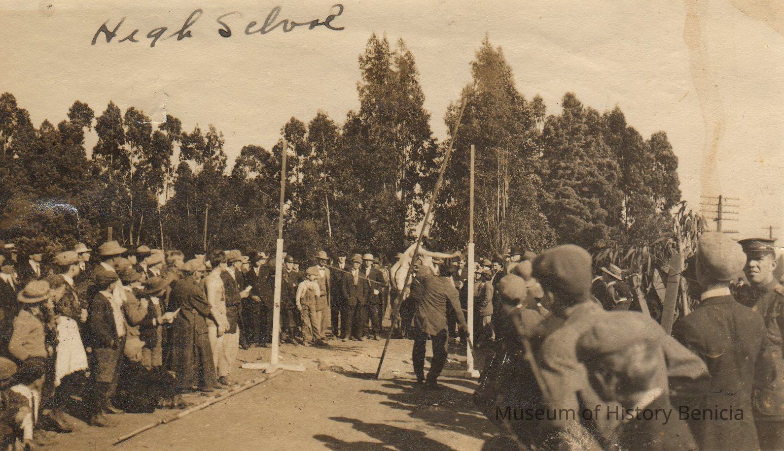 B/W Photograph: High School track meet held at City Park. The Pole vault event is shown. There is a Frank J Stumm stamp on the back of the photo.Collection