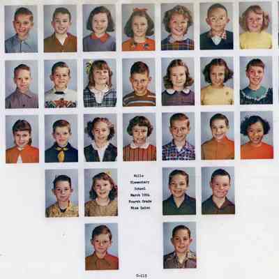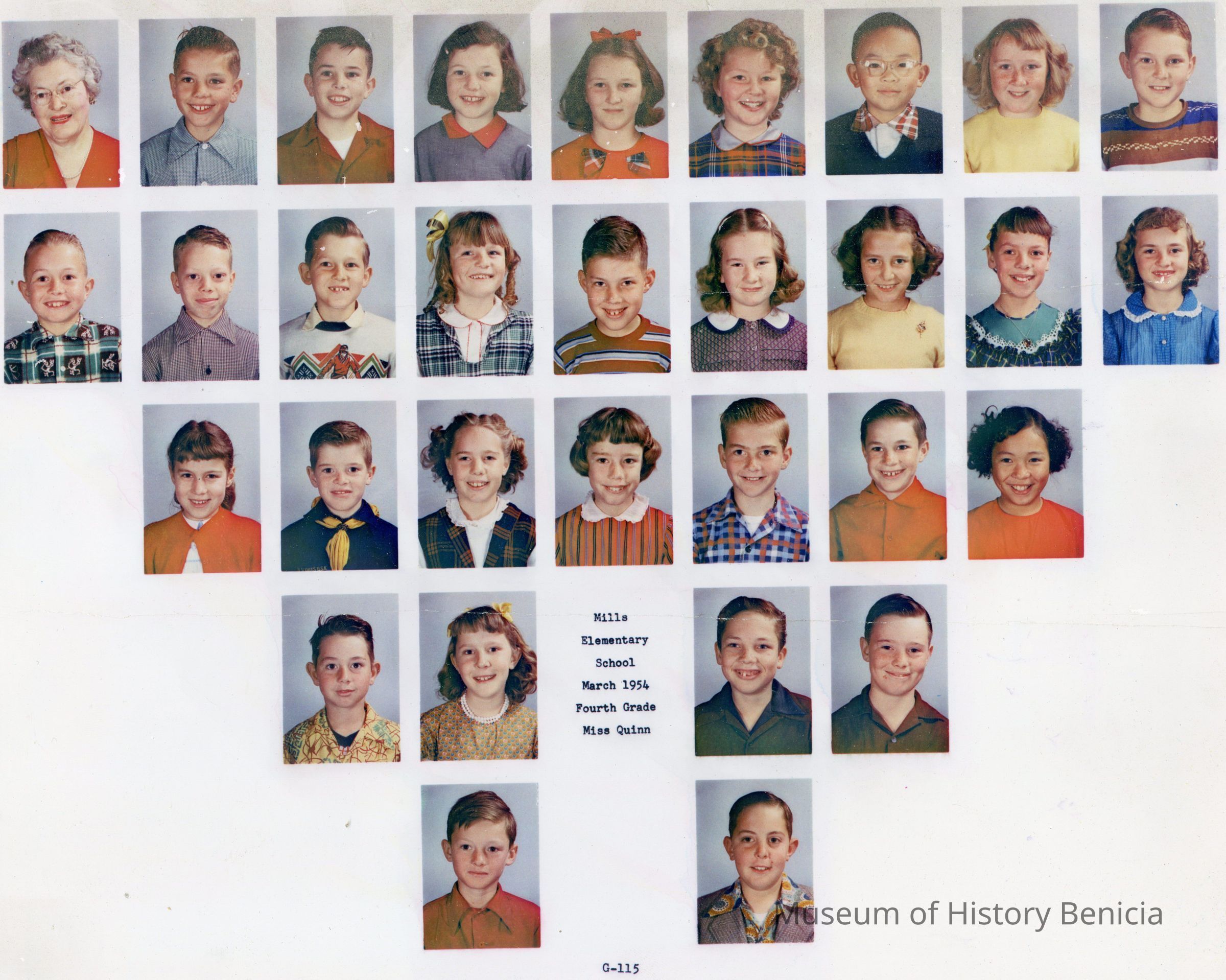School photo of a class 4th graders from Benicia Mills Elementary School in 1954. This is Miss Quinn's class: