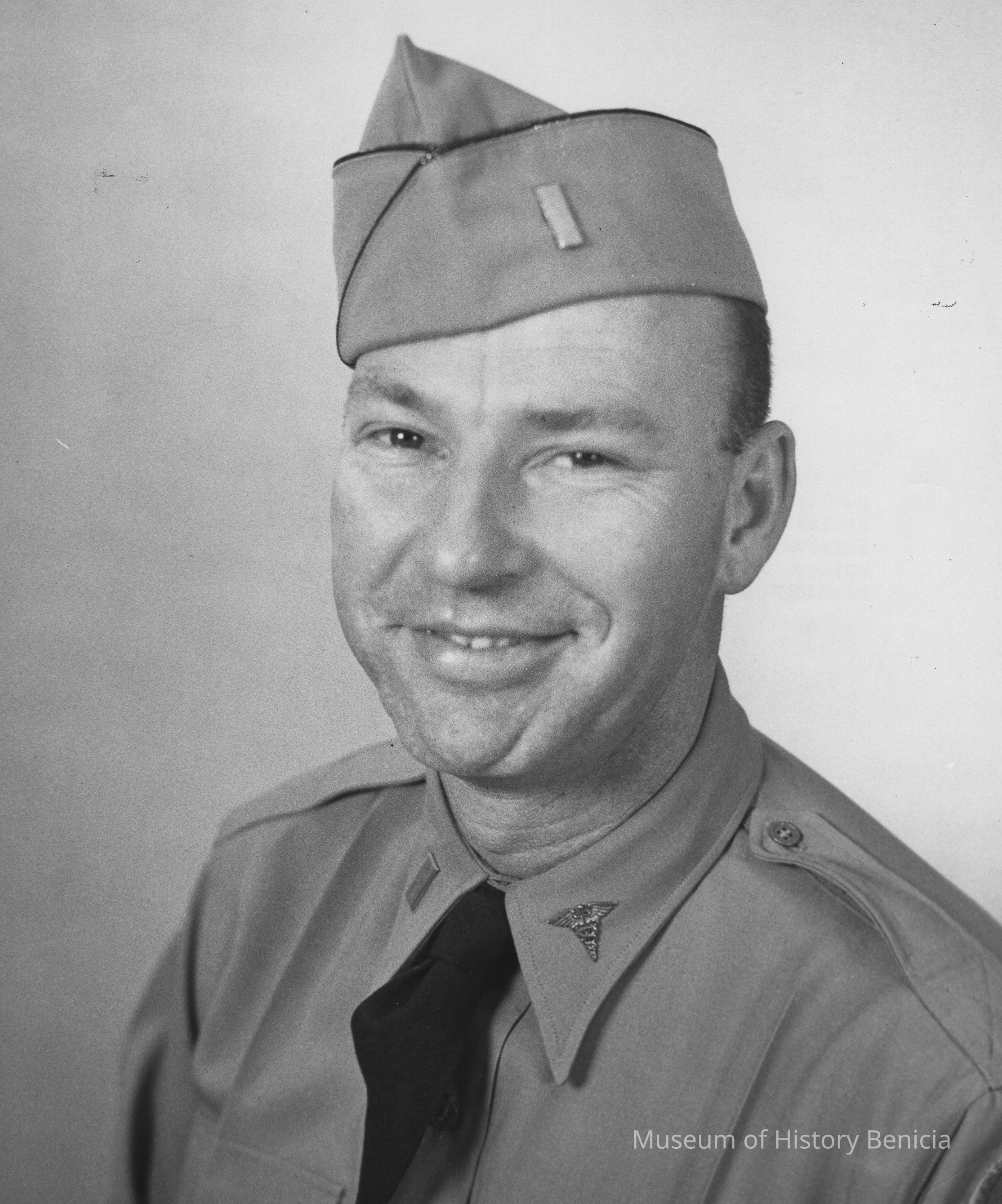 B/W Photograph: 3/4 bust view of mid aged man in uniform shirt and cap. U.S. Army photo stamp on back with "Lt. Robert E. Williams" in red pencil.