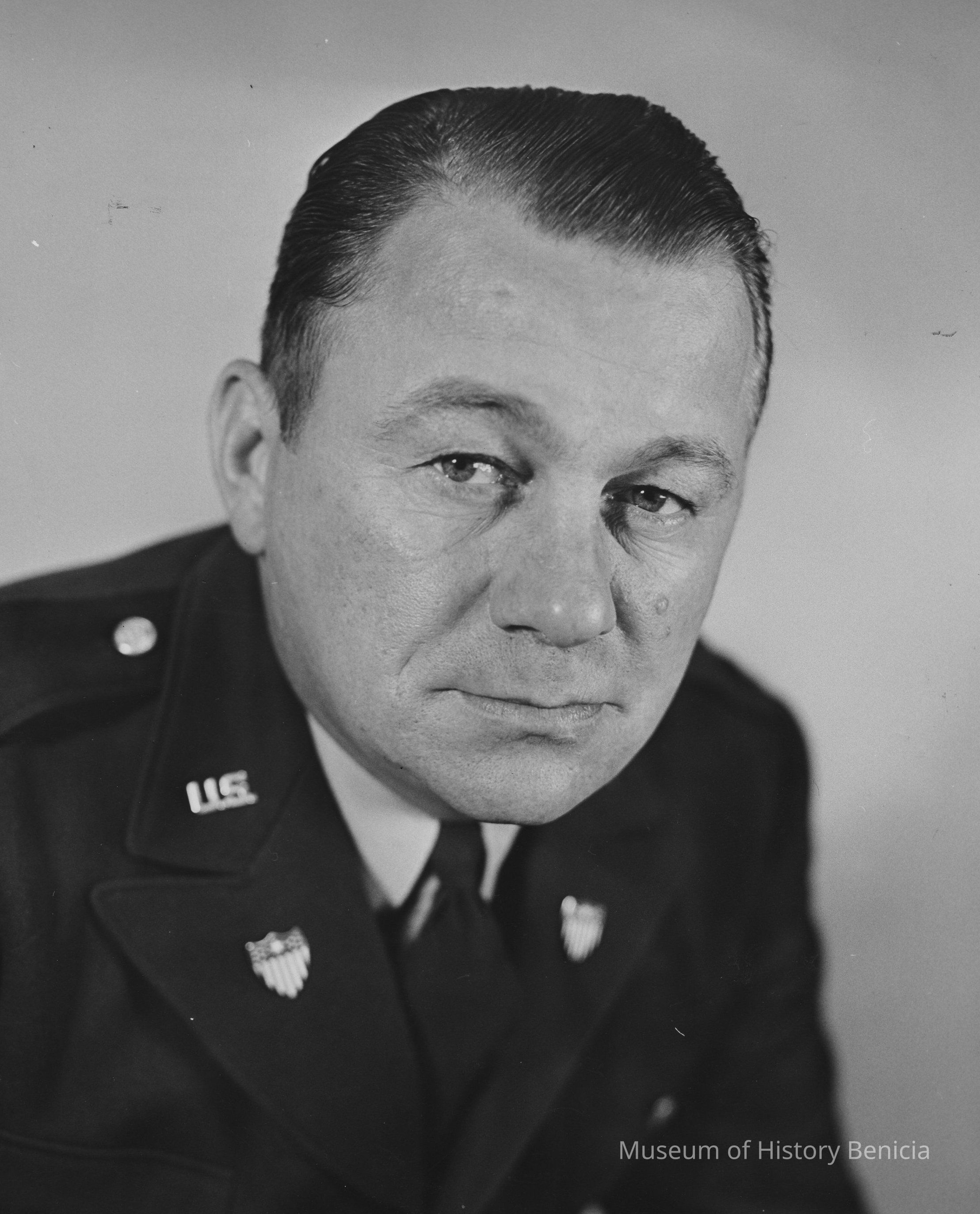 B/W Photograph: head shot of an unidentified, late-middle-aged man with dark hair in army uniform. U.S. Army photo stamp on back.