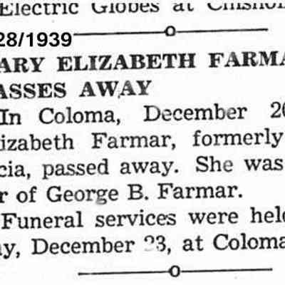 B/W Photograph: Mary Elizabeth Farmar was a longtime teacher. The school where she taught was the West End Primary School and located at West 7th and Military. Mary Farmar School at 901 Military West is named for her.Collection