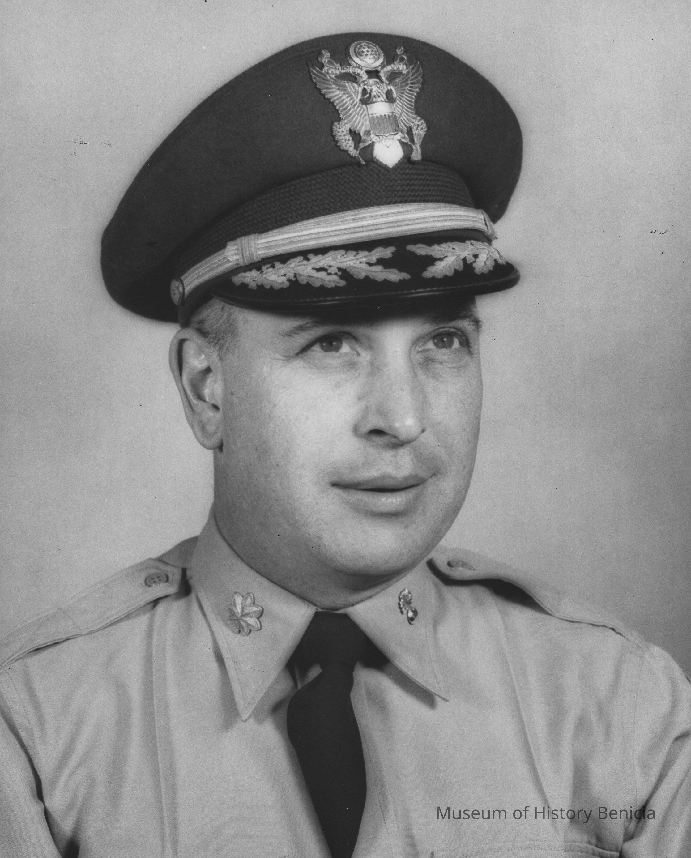 B/W Photograph: head and shoulders shot of an unidentified middle-aged man in army uniform and cap. On back: U.S. Army photo stamp and "04071-55/ORD-58".