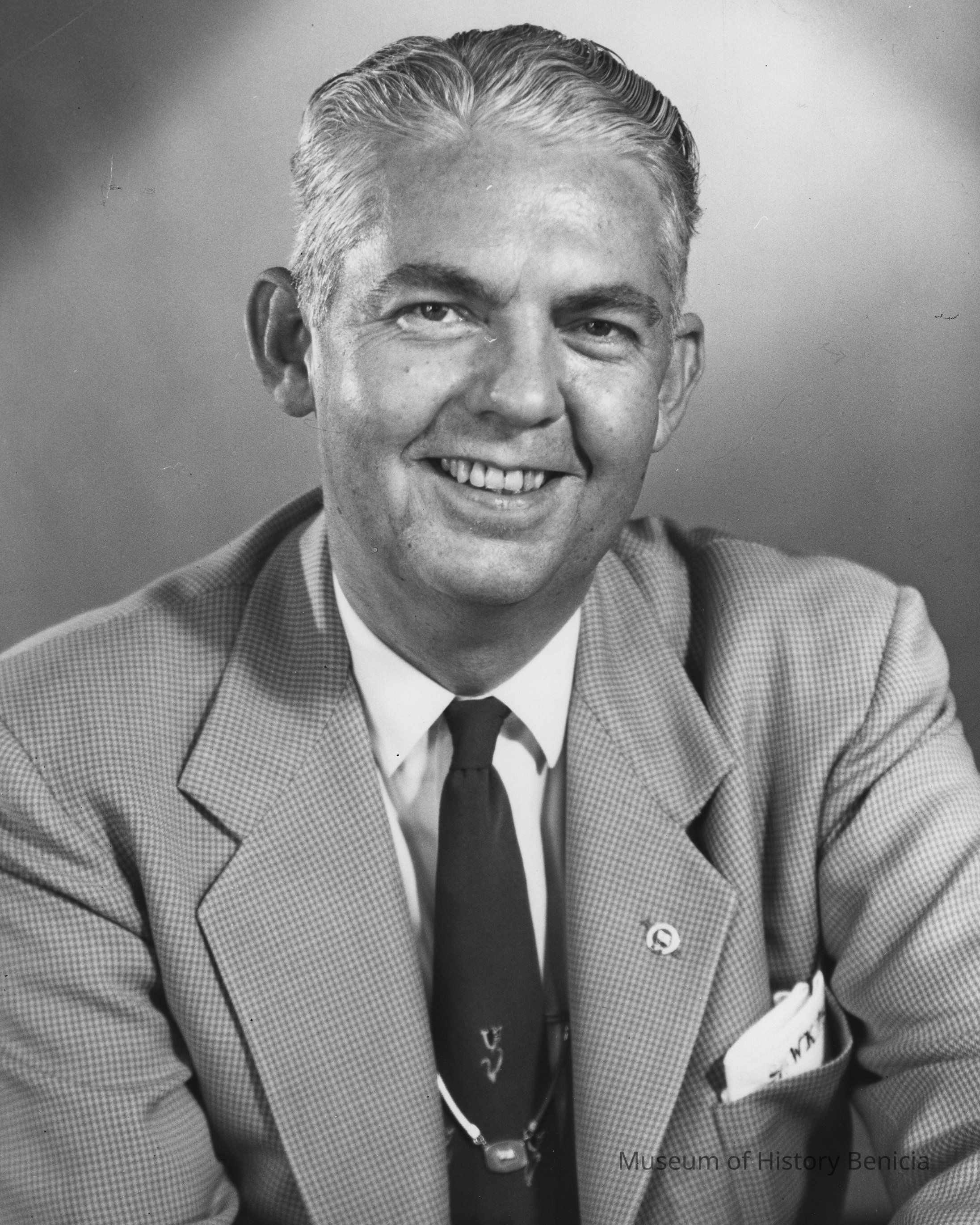 B/W Photograph: mid-chest-up view of grinning gray-haired man in checkered suit. On back: "J. Walter Kamb" in green ink, "04071-604-1 / ORD-56", and U.S. Army photo stamp.