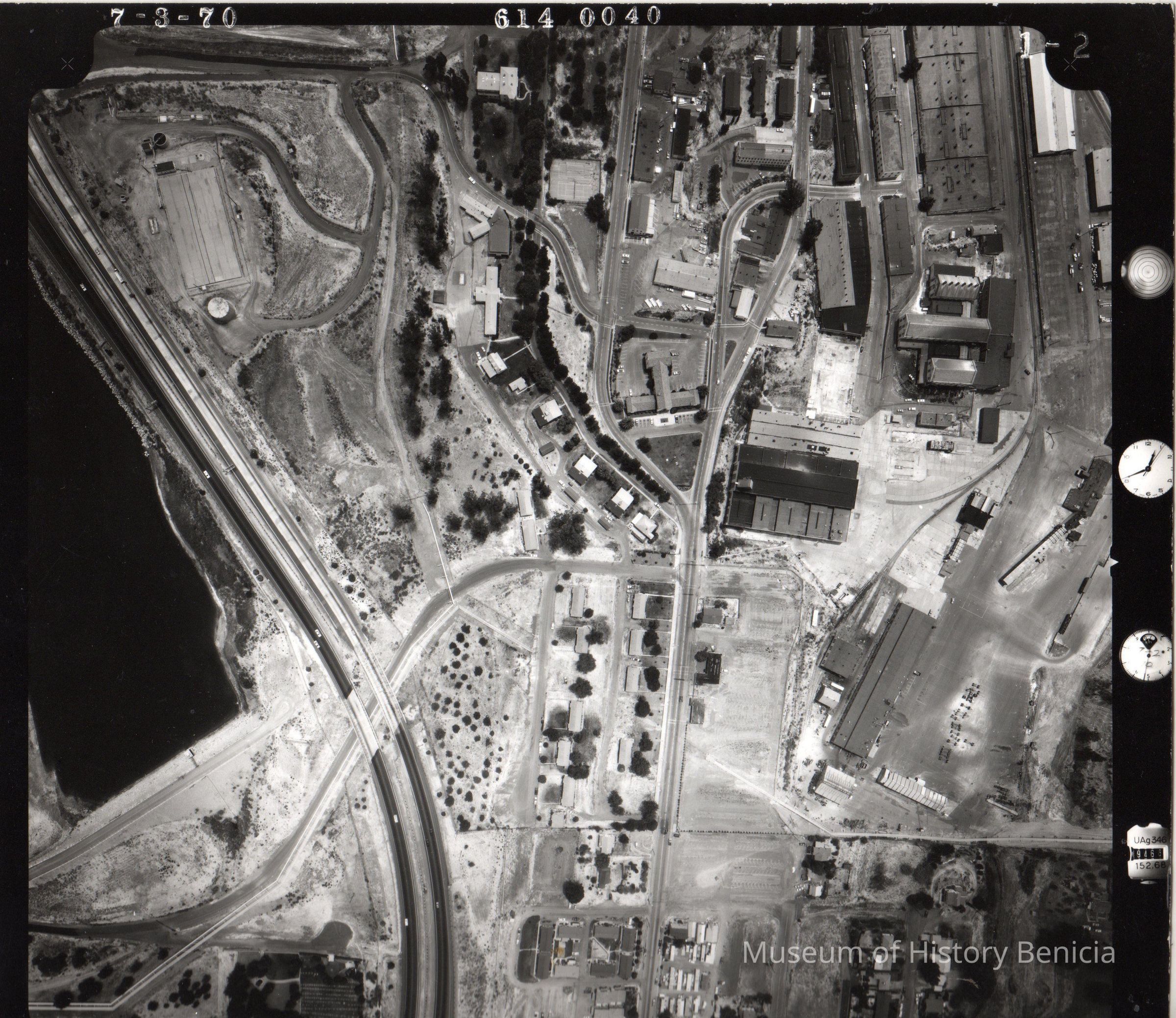 B/W aerial view of Benicia Industrial Park and Arsenal south of 780.
