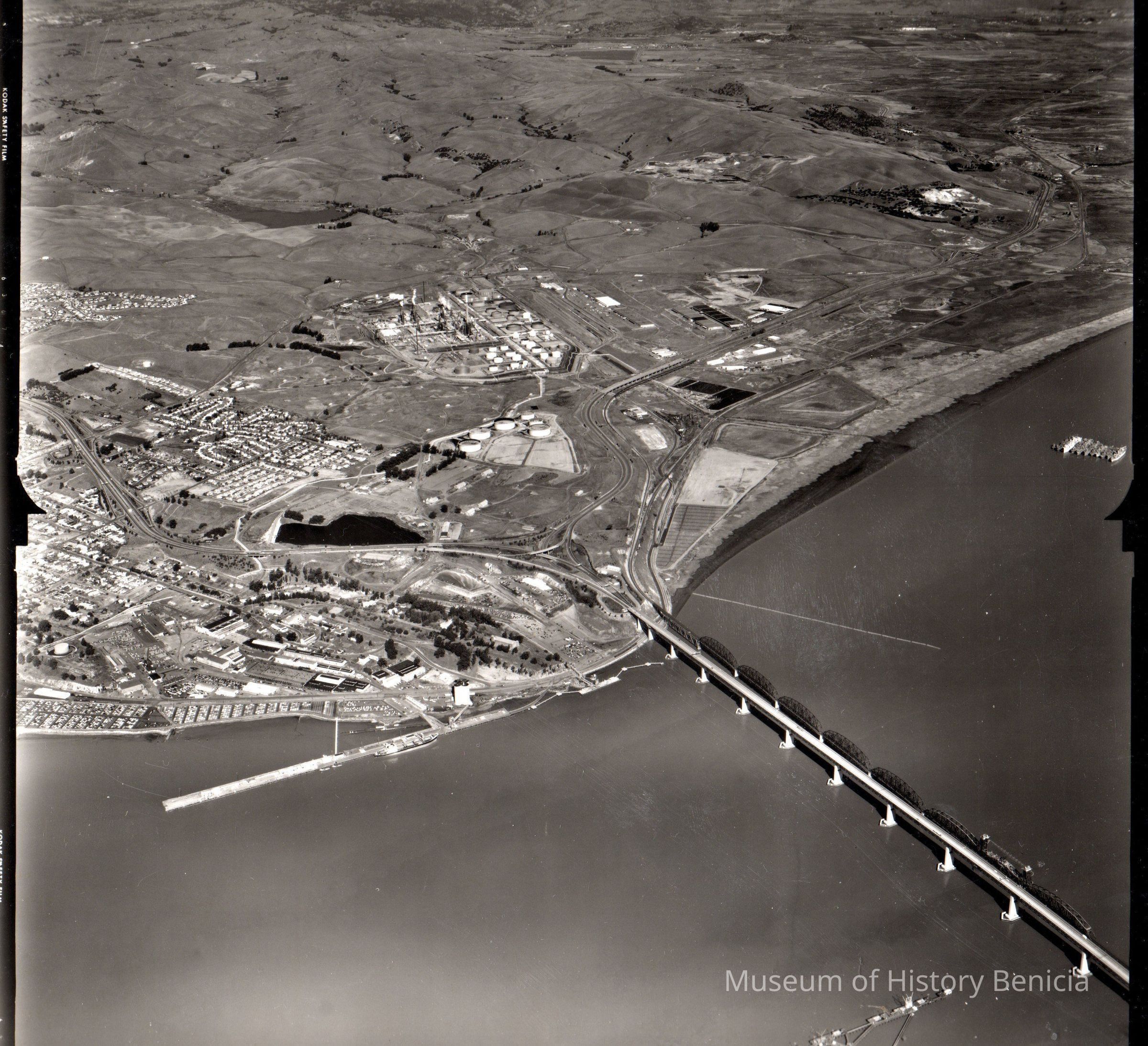 B/W aerial view showing bridges and Industrial Park.
