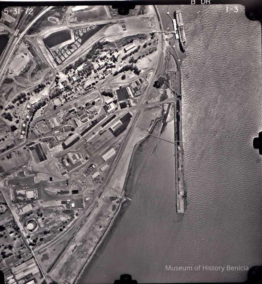 Aerial photo of Benicia Industrial Park, showing docks and area south of 780.Collection