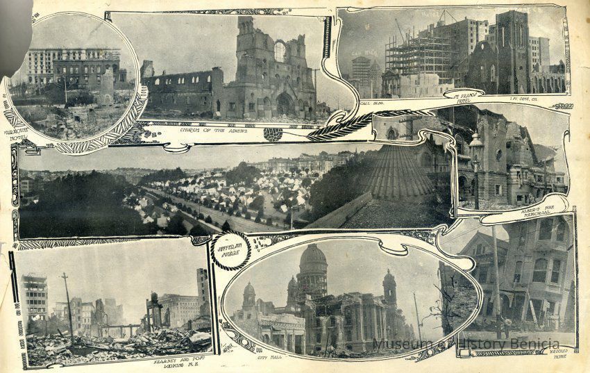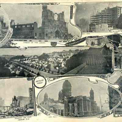 This is from the San Francisco Call in 1906. It shows various buildings after the 1906 San Francisco earthquake and fire. Included are: