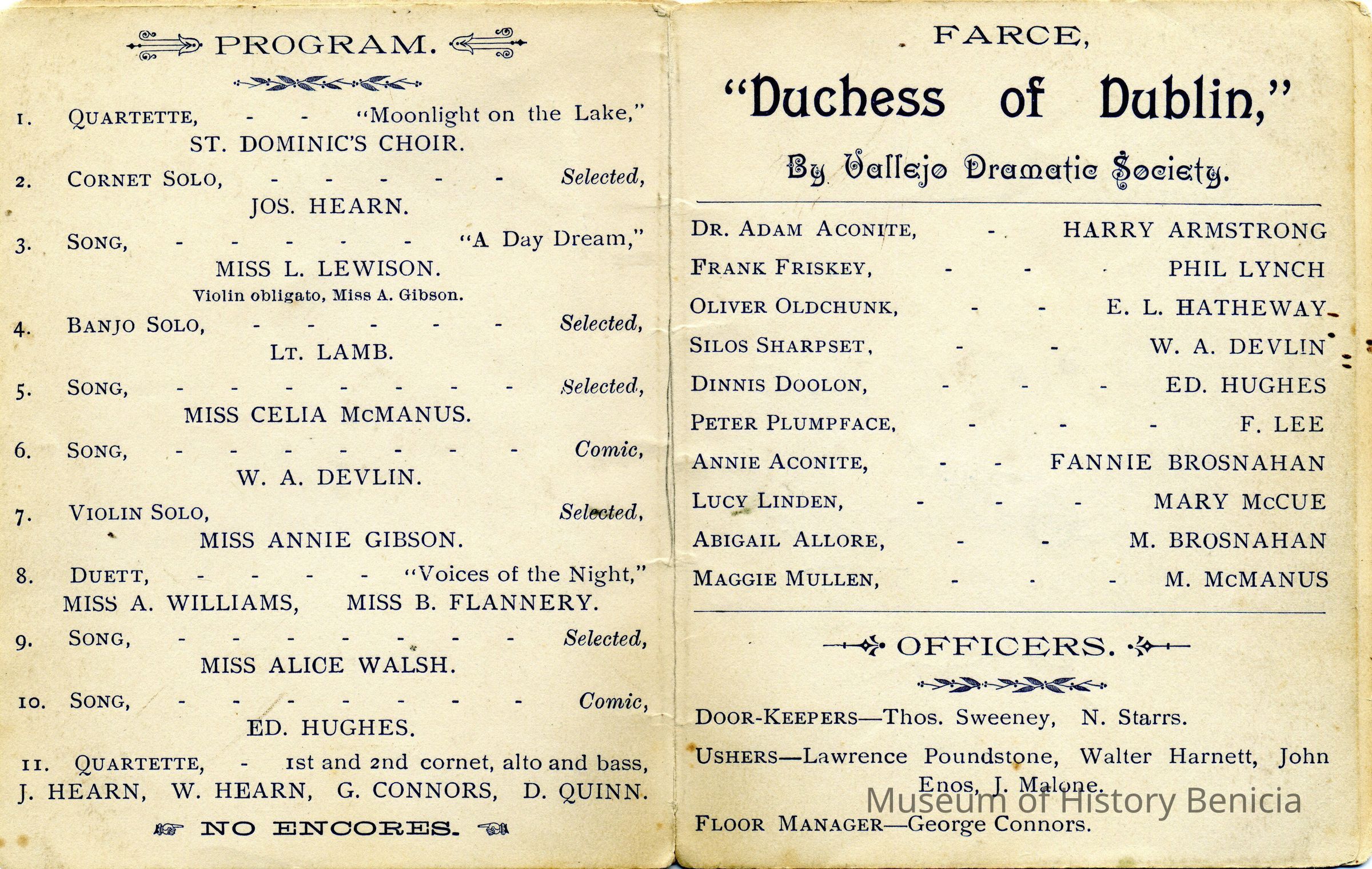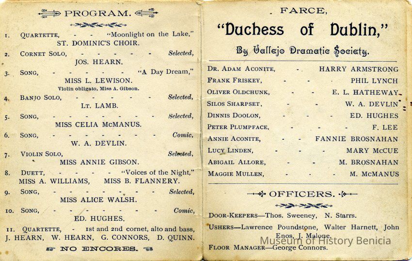 as well as the Vallejo Dramatic Society doing a play called "Duchess of Dublin".