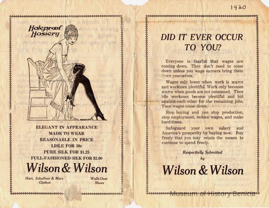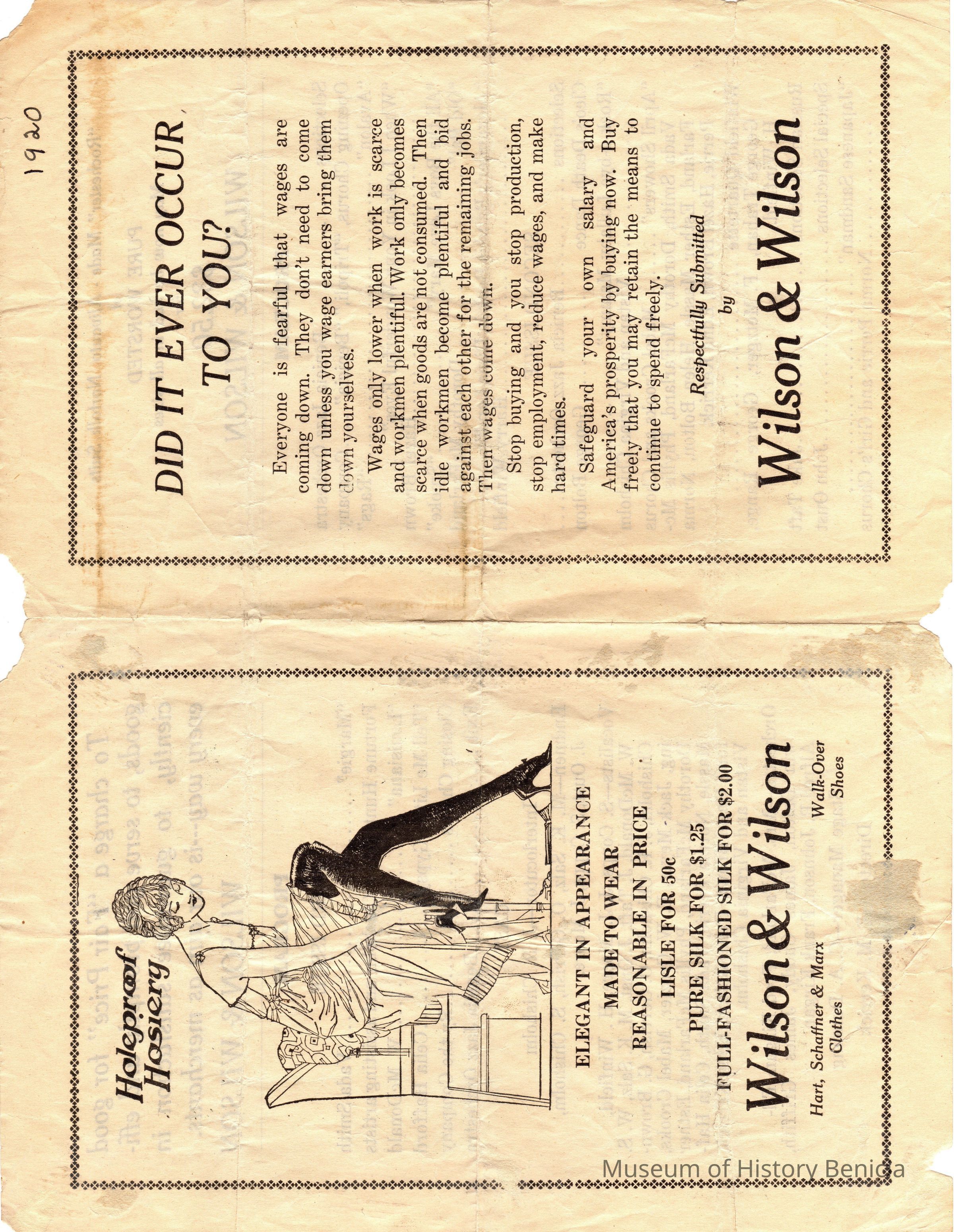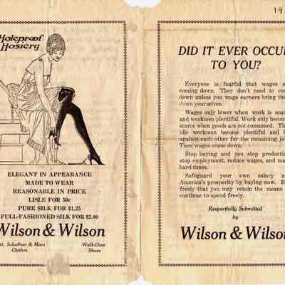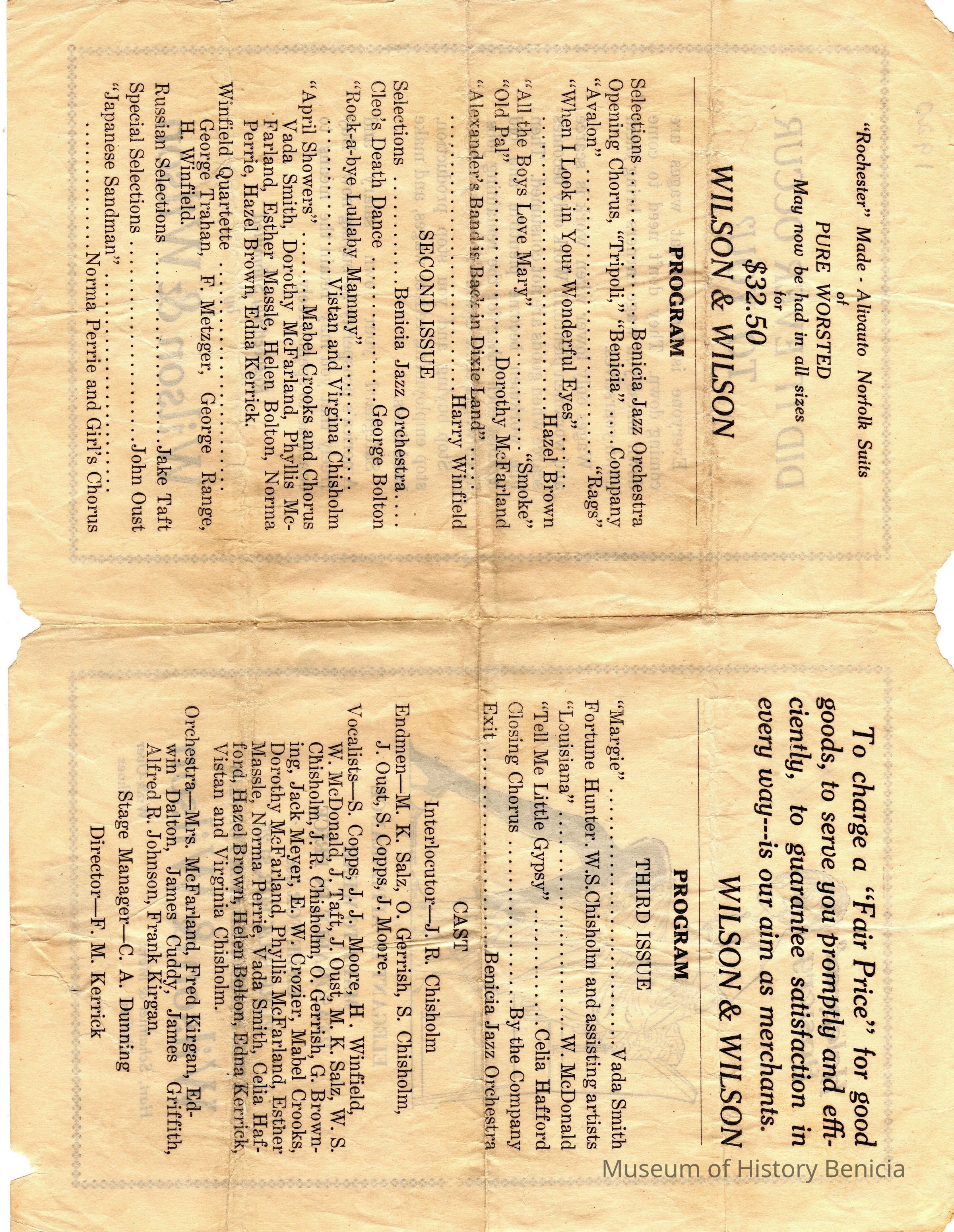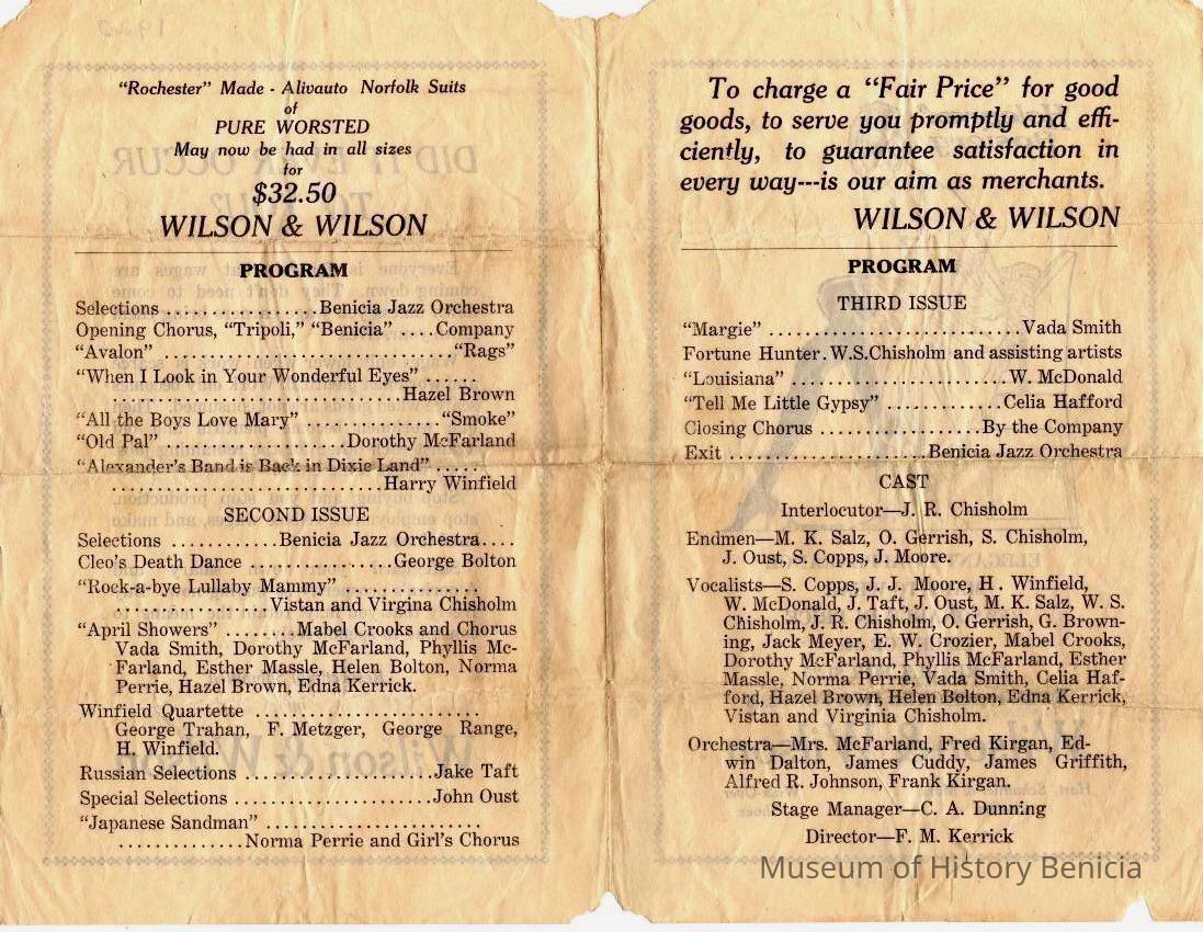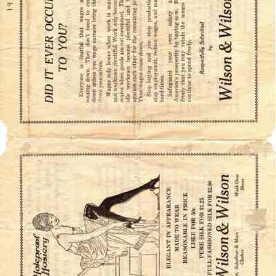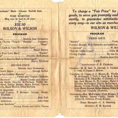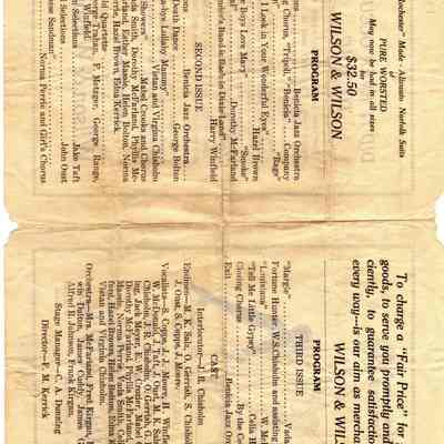Musical program with lots of ads for Wilson & Wilson clothing store.
