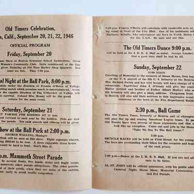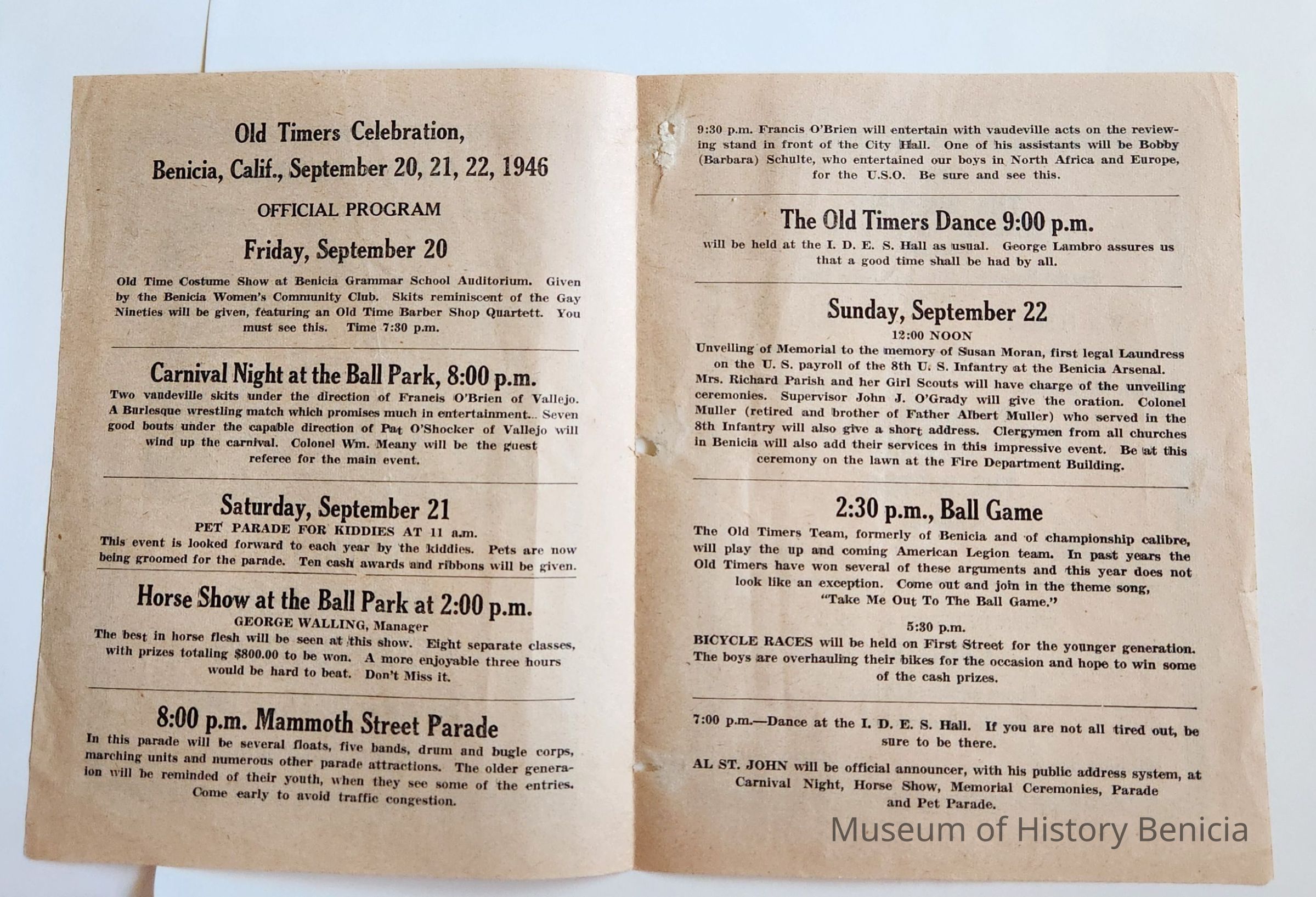 Official Program / Benicia / Old Timers / Celebration / September 20, 21. 22, 1946 / Benicia, California