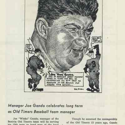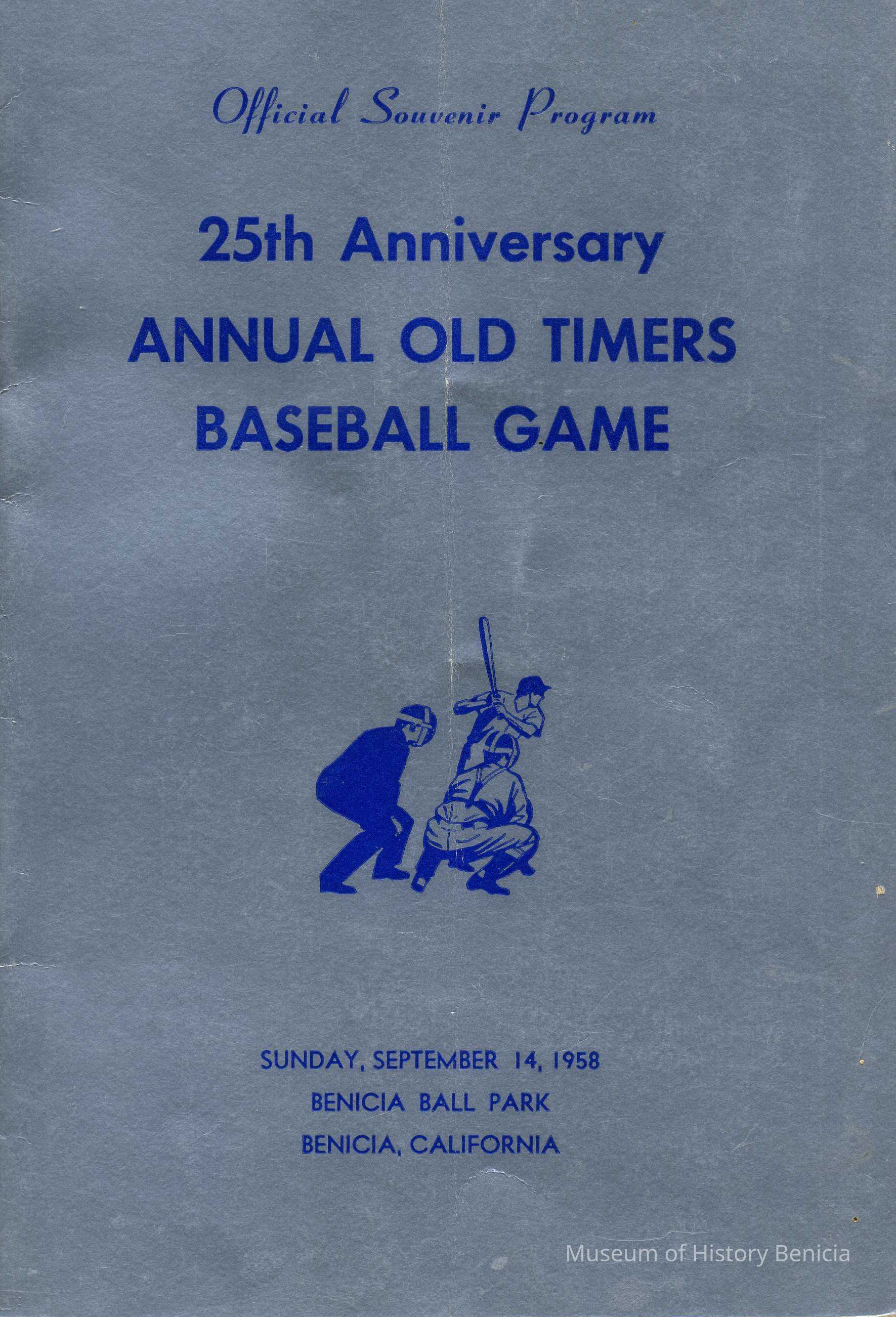 contains information about the Old Timers, pictures of various teams, and individuals, like Joe "Winks" Gando and Link Joseph; history of games played by the Old Timers and an unused score sheet;