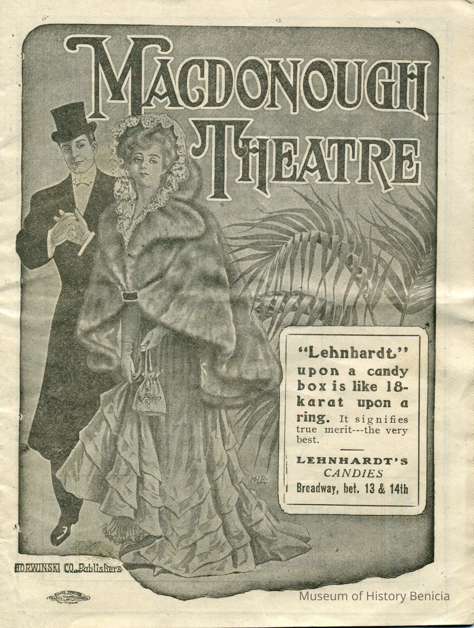 Program on cover: MacDonough Theater with a picture of a well dressed man and woman obviously entering the theater
