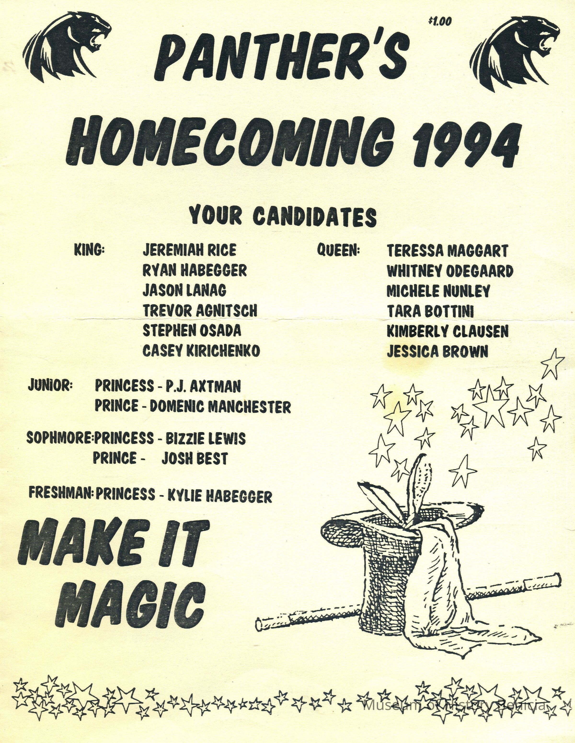 Program - Benicia High School Panther's Homecoming 1994