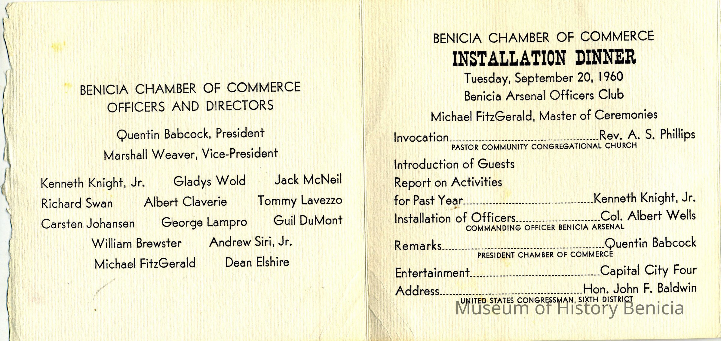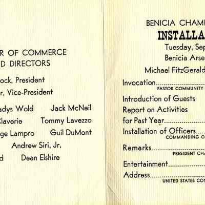 This is a program for a Benicia Chamber of Commerce installation diner.
