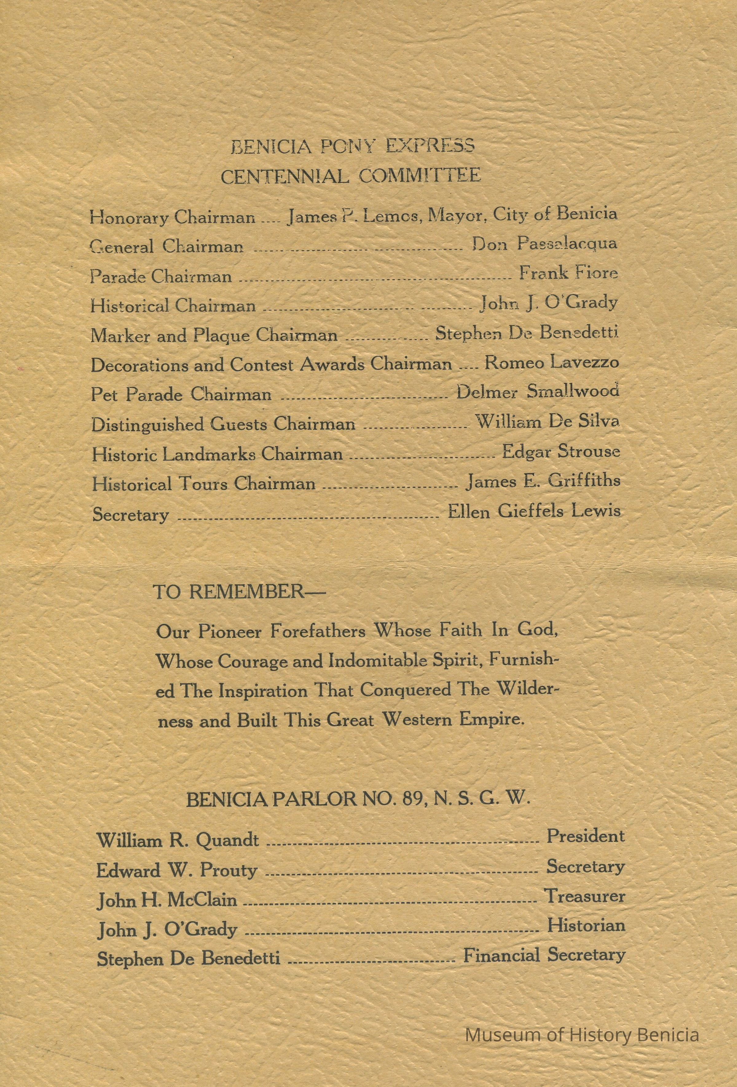 Benicia Pony Express Centennial Committee