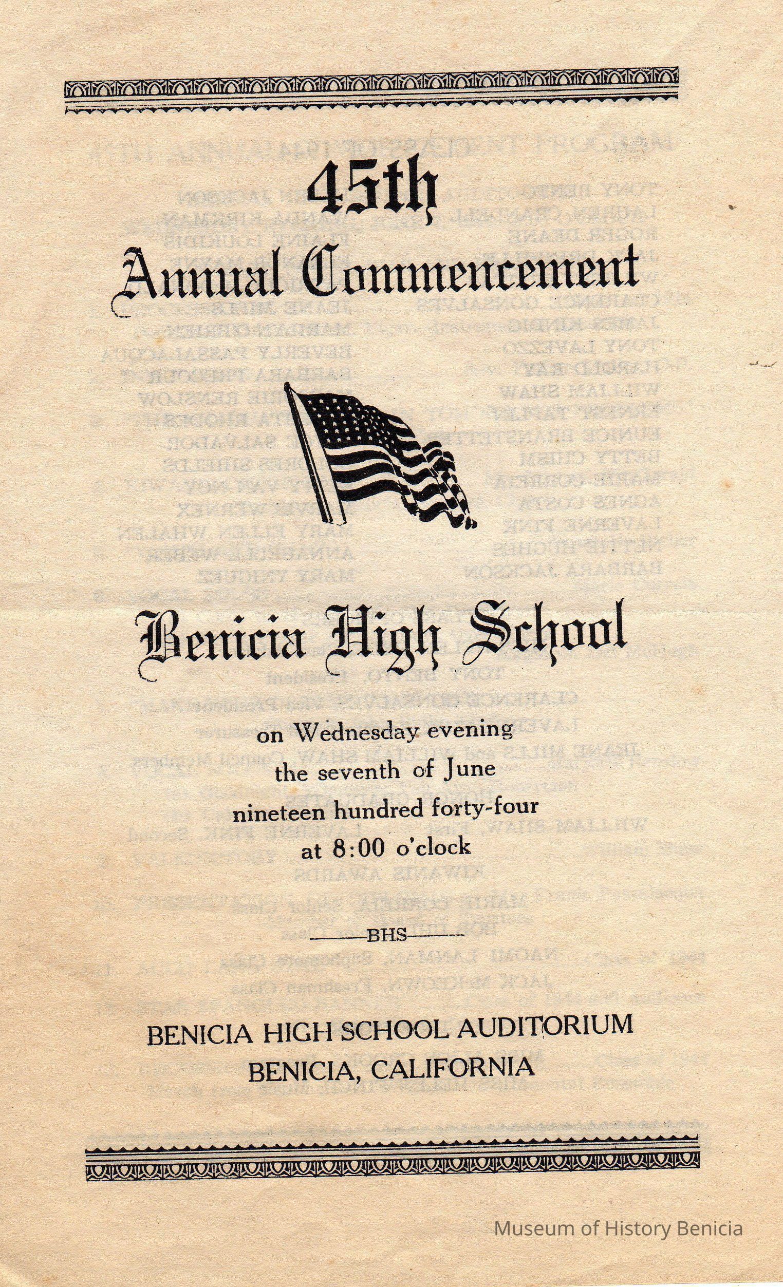 Commencement program from Benicia High School-- 45th. (1944)