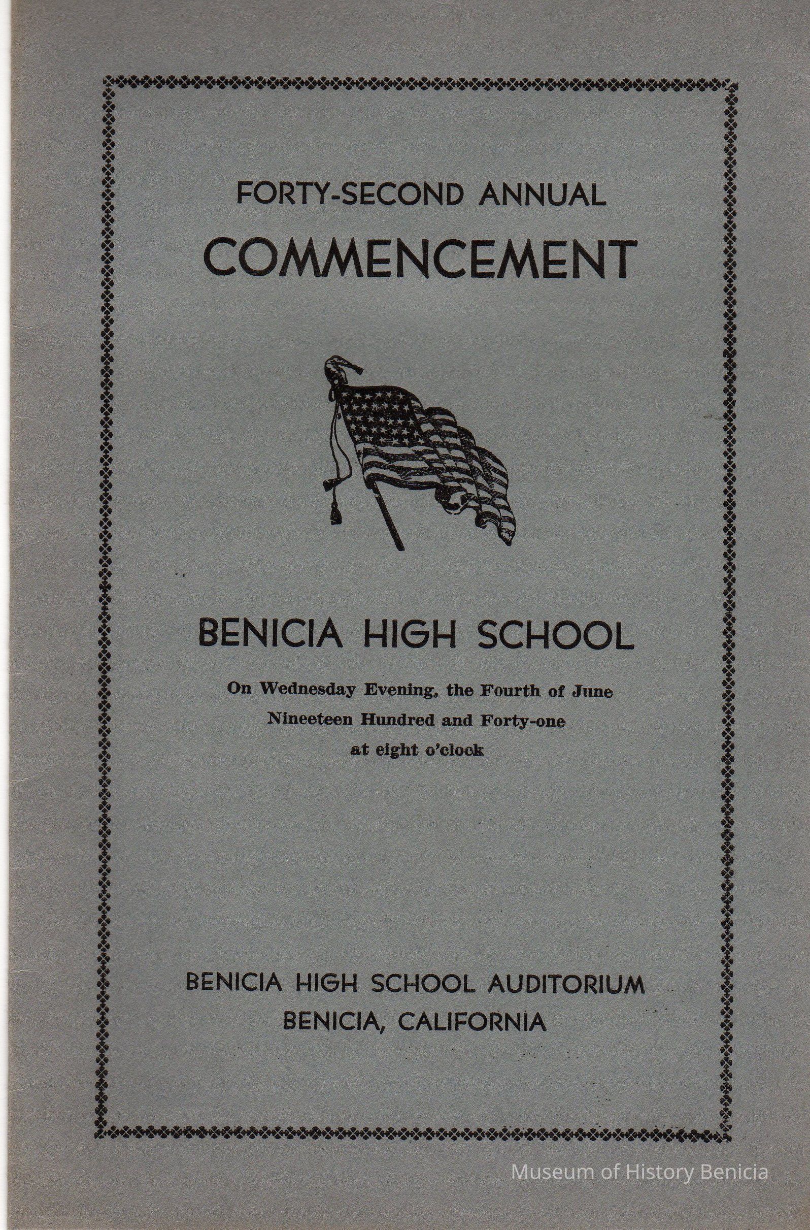 Benicia High School Commencement Program-- 1941