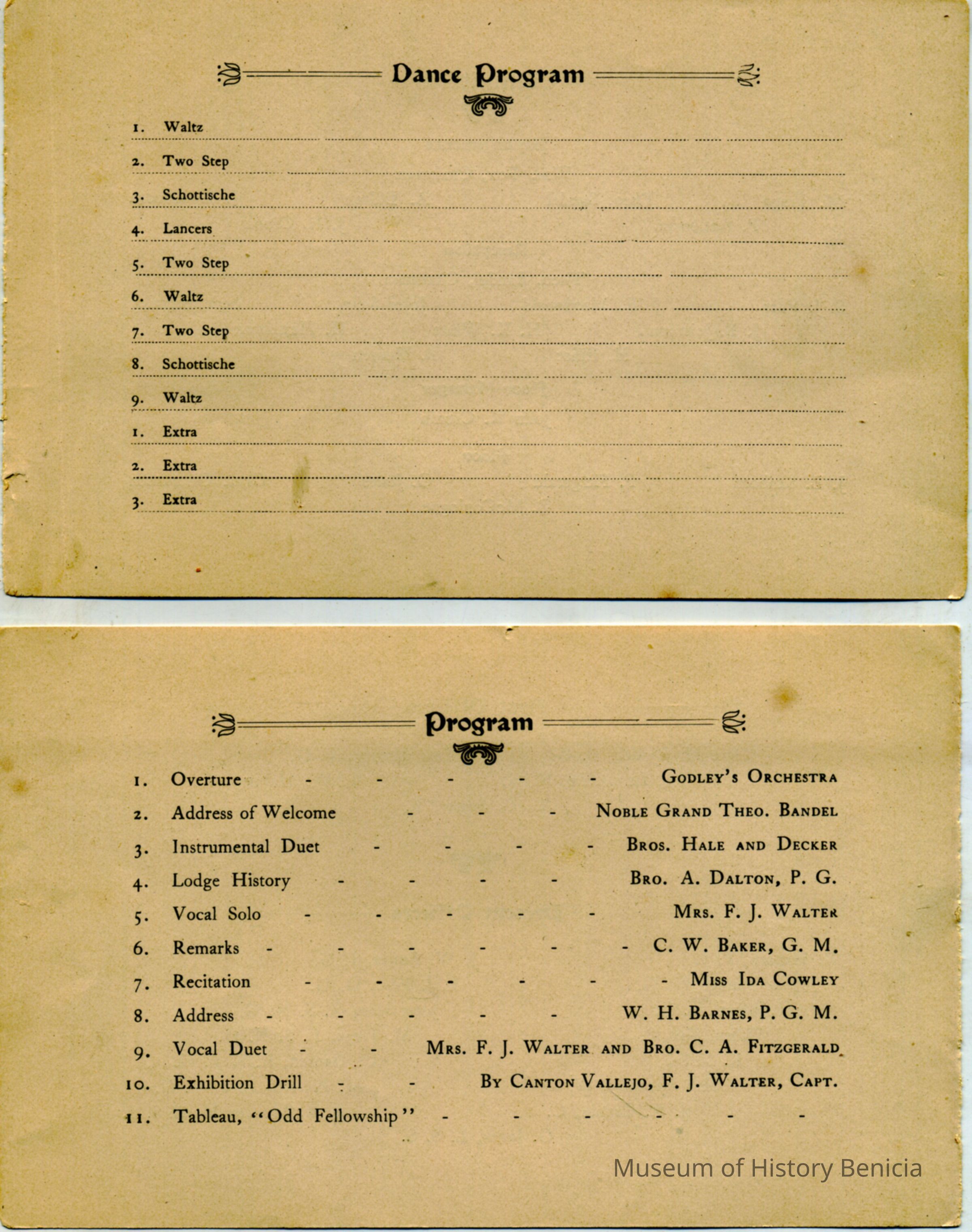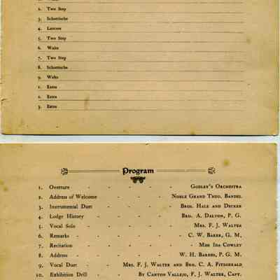 This is the program for a lodge in Benicia's entertainment. It seems to be the Odd Fellows lodge (I.O.O.F.). The date is not shown.
