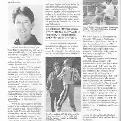 There are feature 49ers players articles such as "Niners Score Points Against Drugs", "Keena Turner: Time Is On His Side", and Ted Walsh: A Niner Basketball Salute to #11" (Joe Montana is pictured on this page and on inside cover).