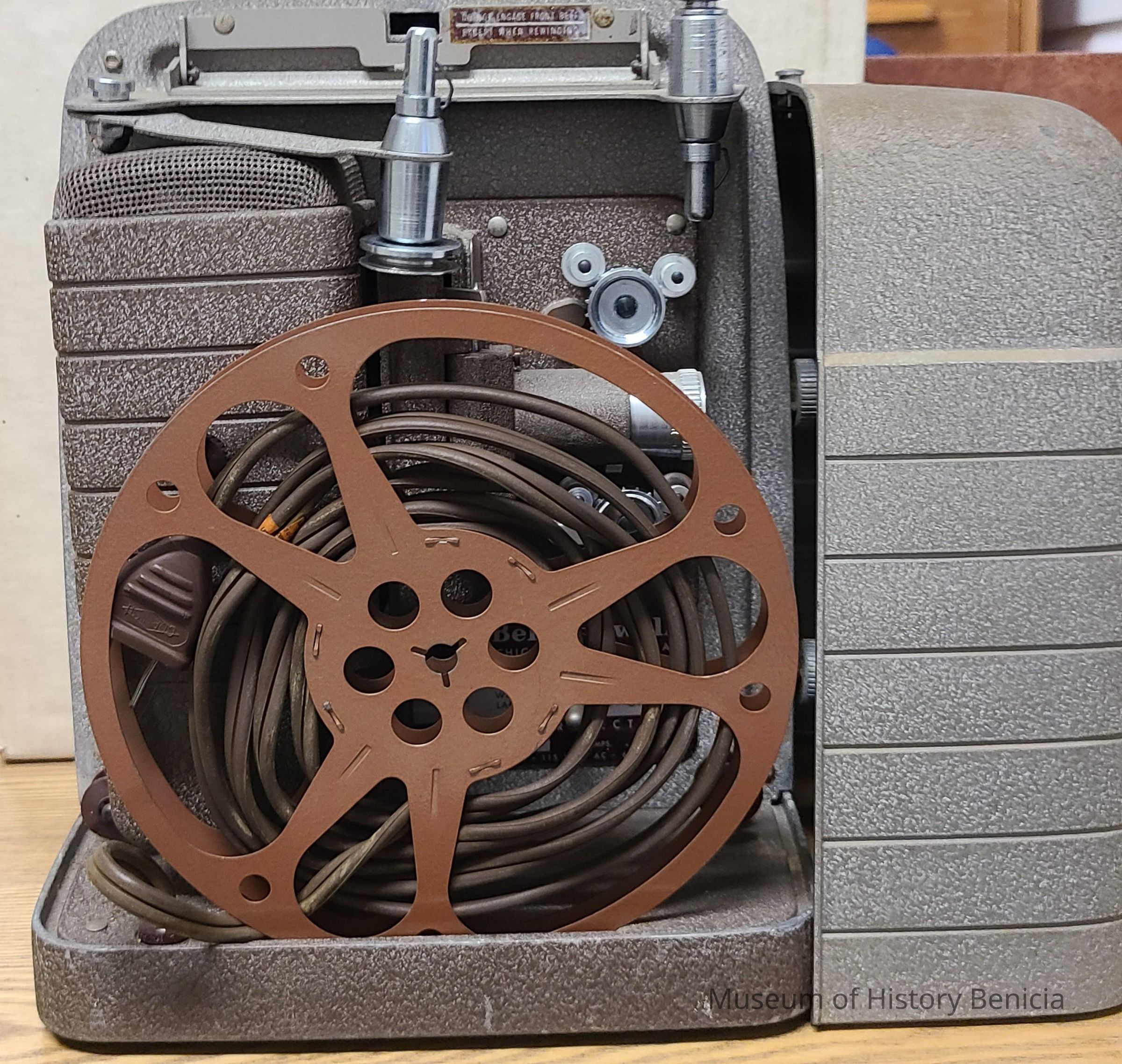 8mm film projector by Bell & Howell model 253A. It is in a grey metal case.