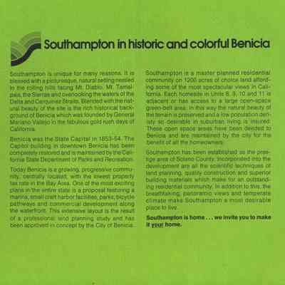 Sales Folder: Southampton Company "View Living in Benicia"