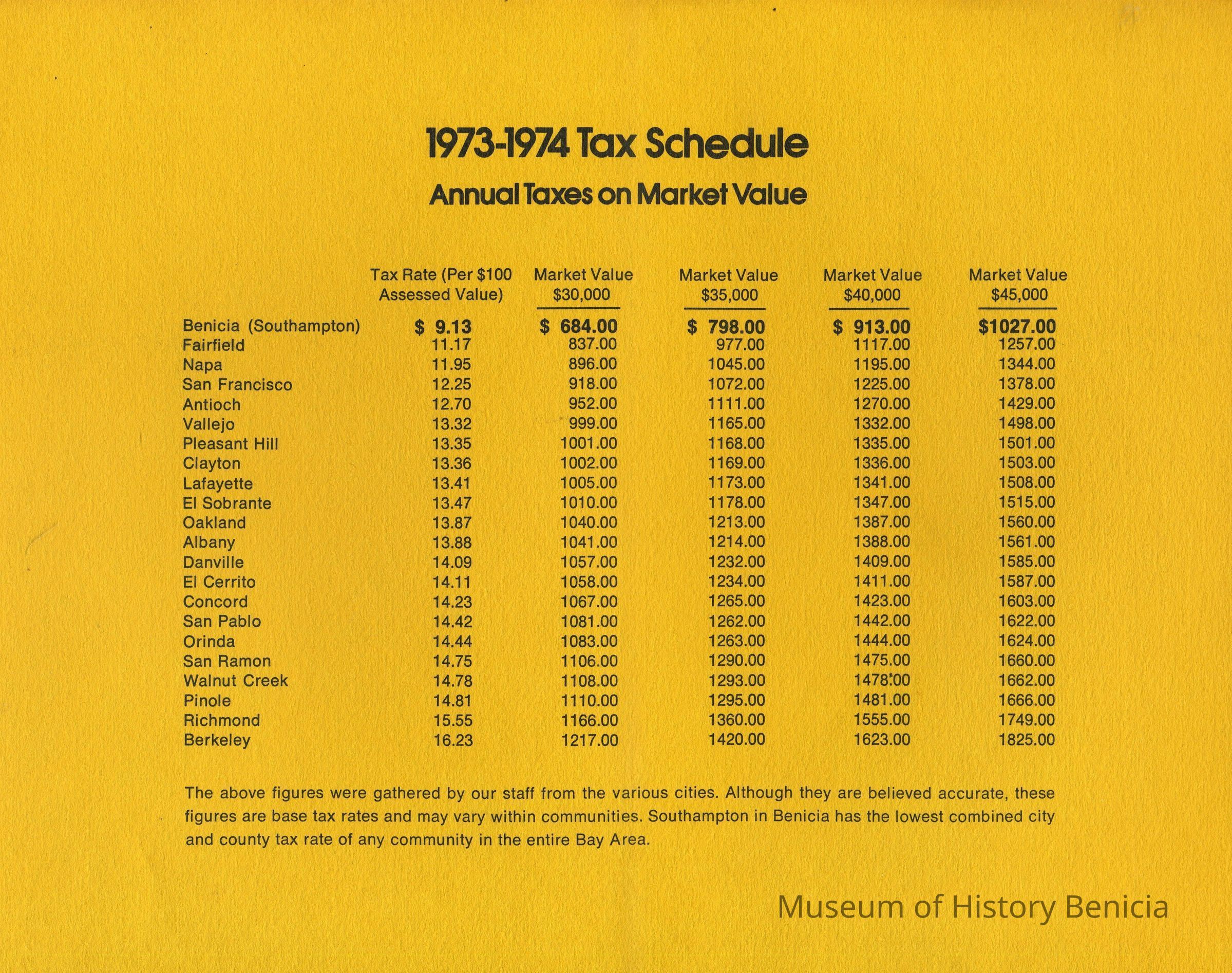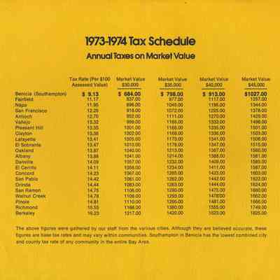 3. 1973-1974 Tax Schedule of cities in the bay area; Benicia was