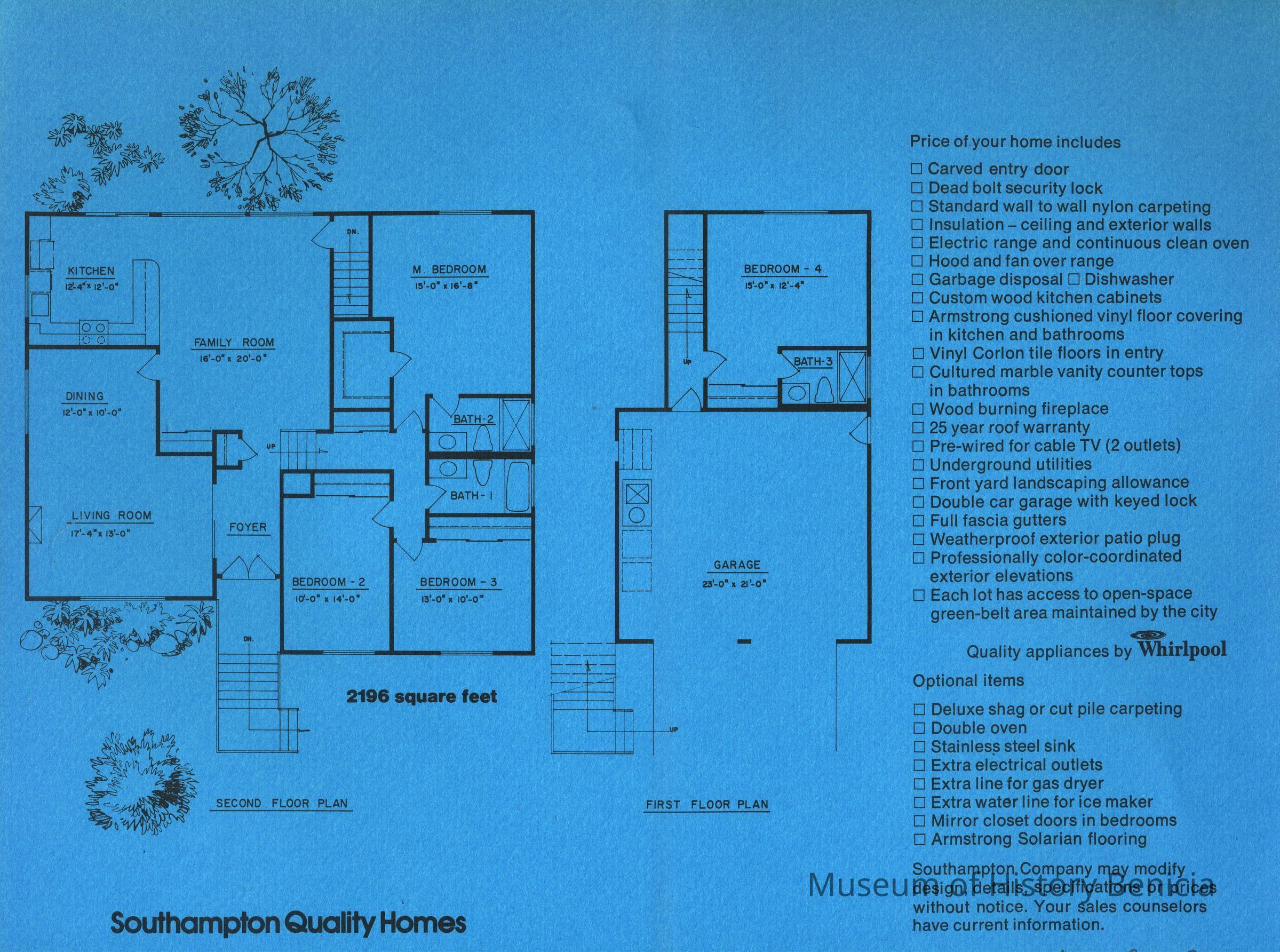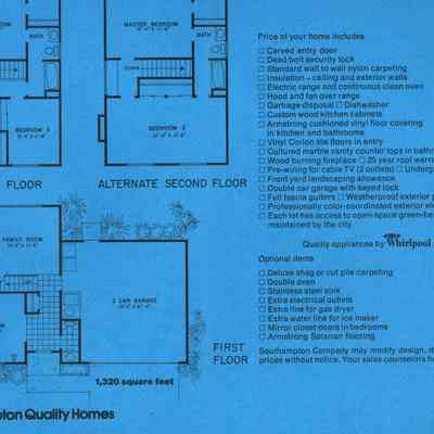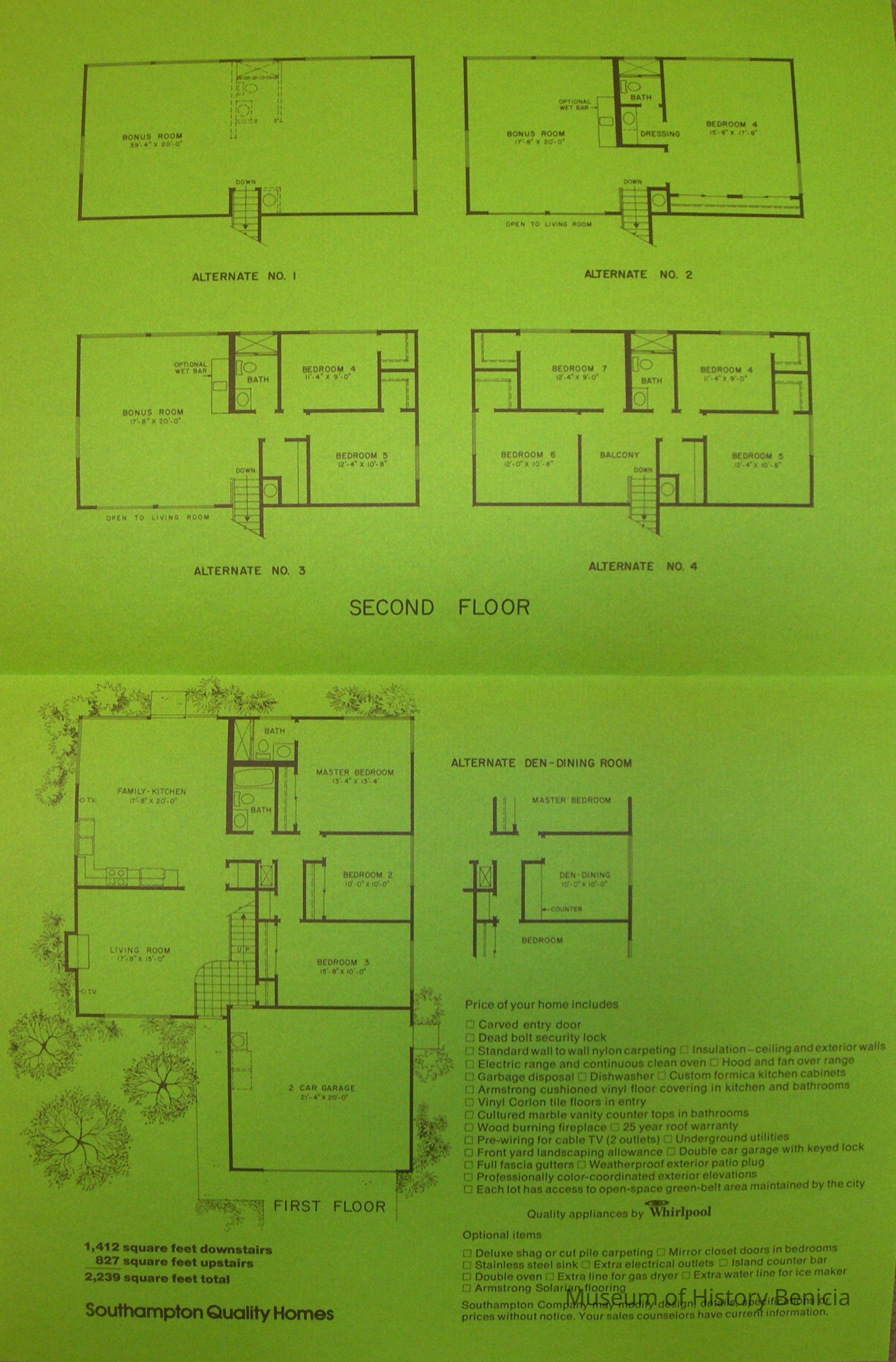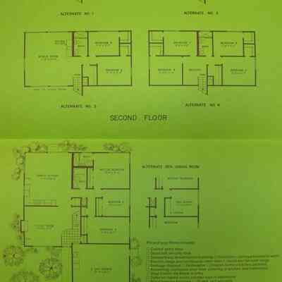 design on front, indoor plans inside with alternates for
