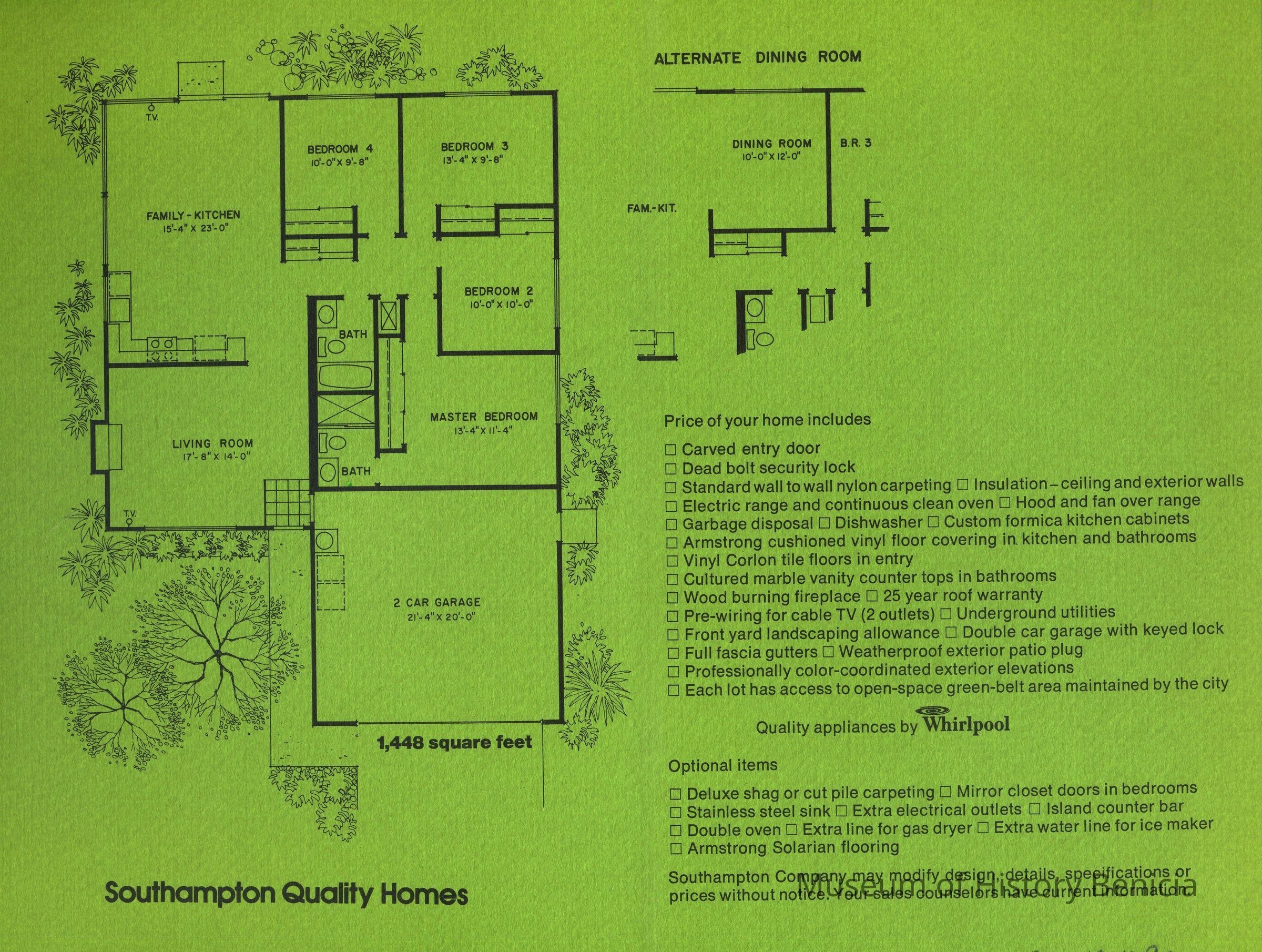 6. Dover Plan - 4 bedroom, 2 bath, 1448 sq. ft.; outside design on