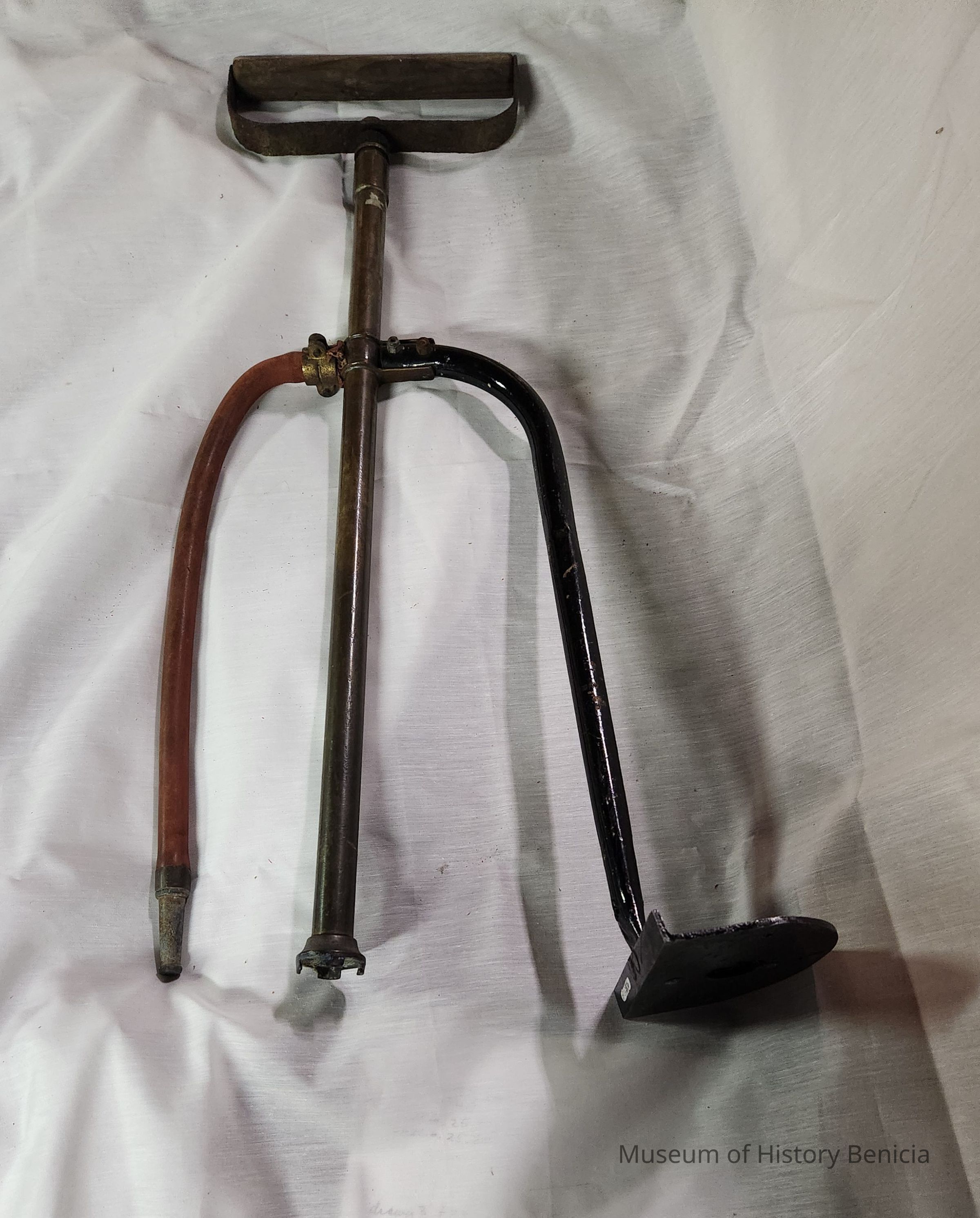 It has a rubber hose with cast metal nozzle, metal foot anchor, and metal strainer.Collection
