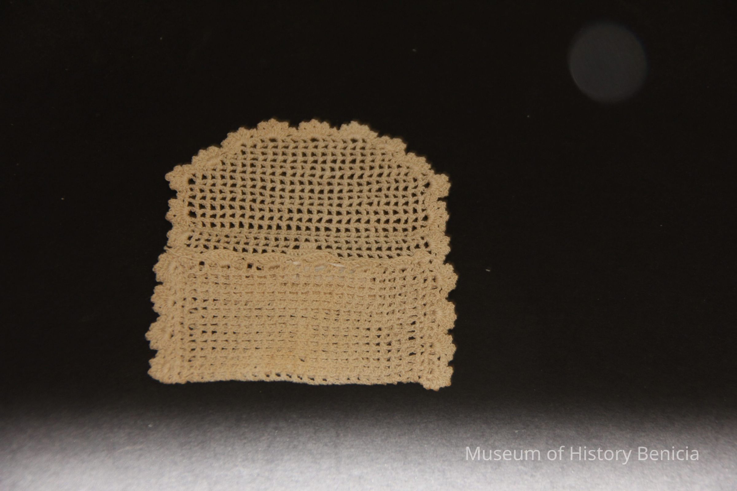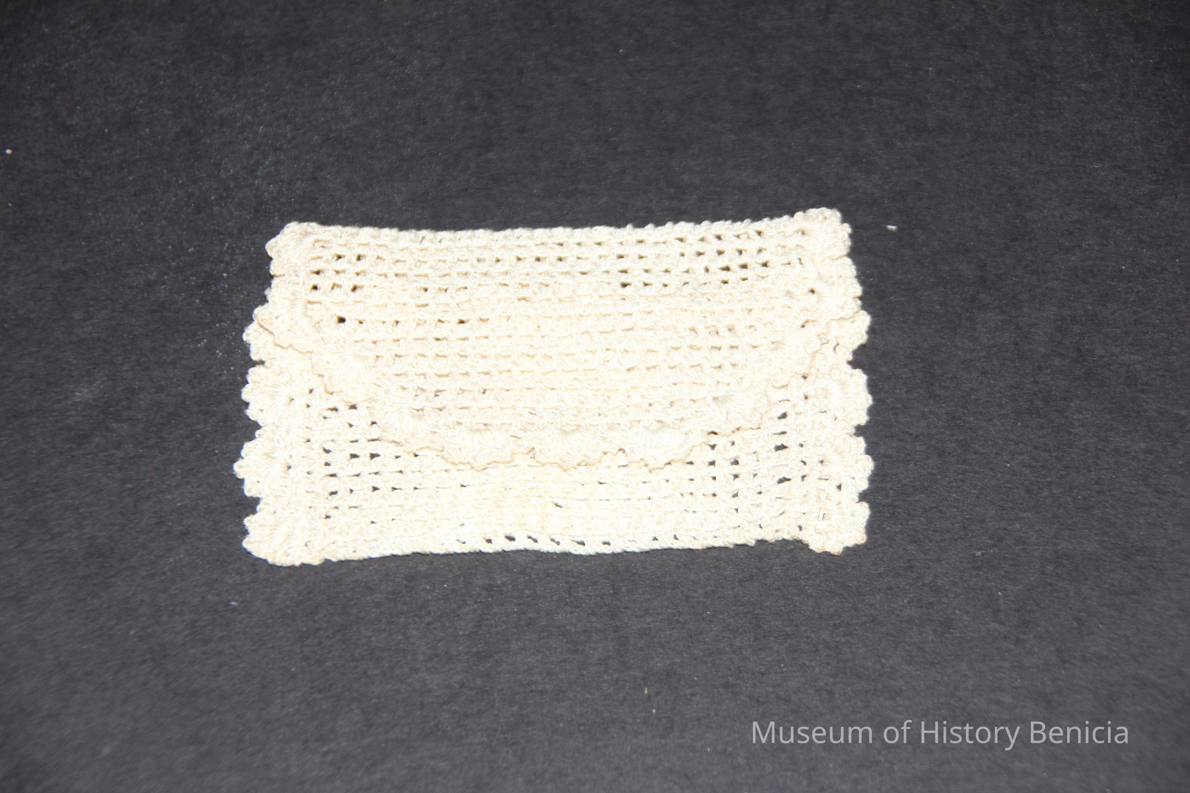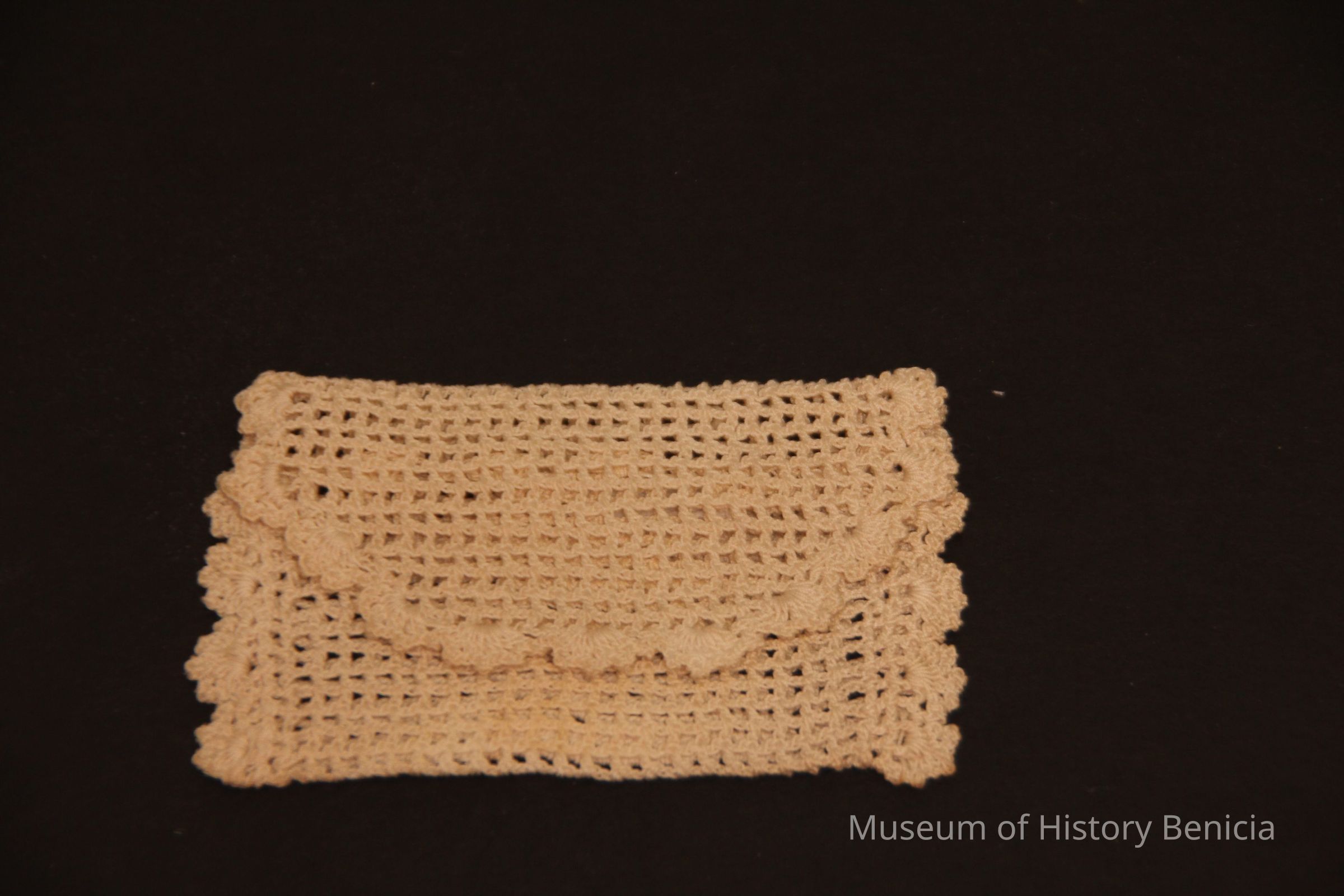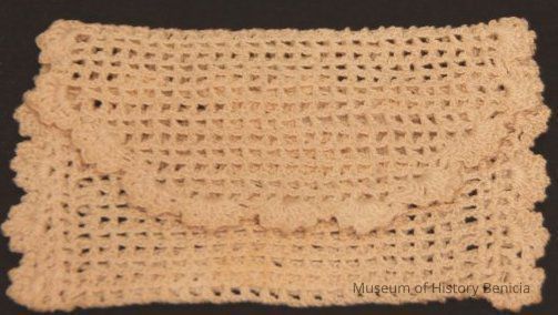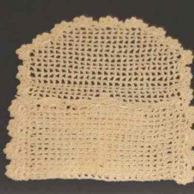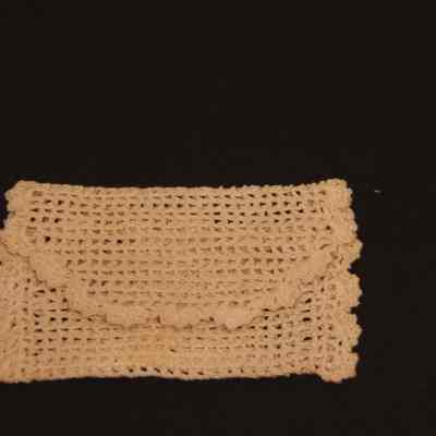 Purse fits inside 93.44.17. Crochetted envelope with tree design on one side.