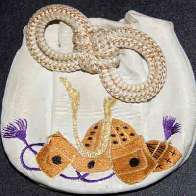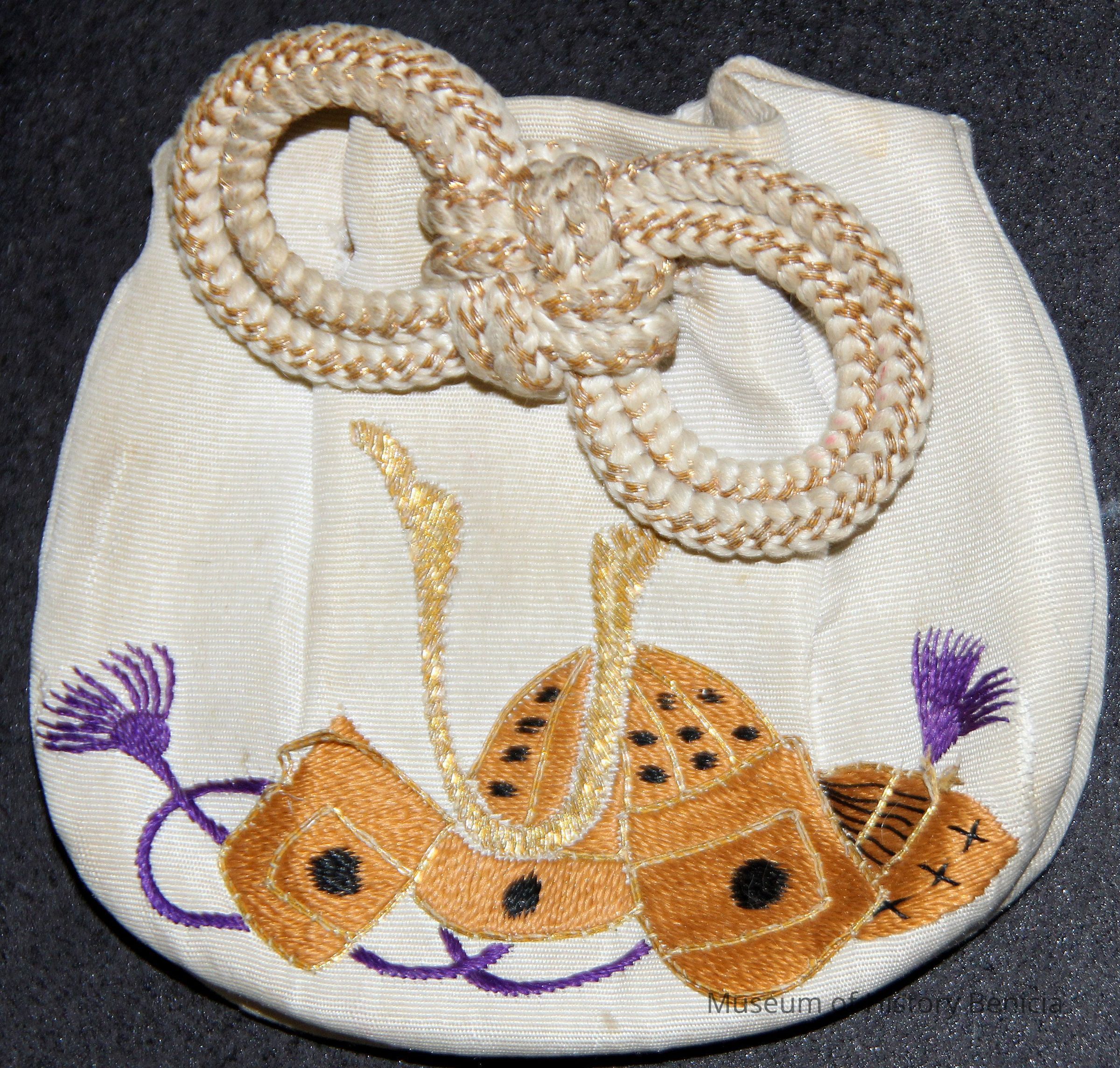 Small fabric purse with Oriental embroidery