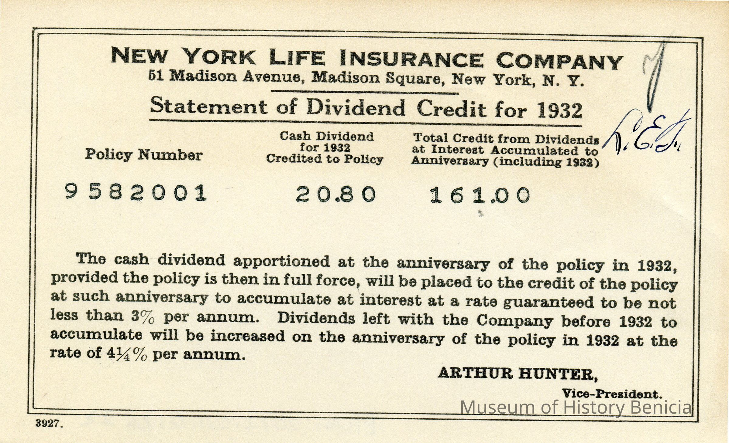 Receipts from New York Life Insurance Company from 05/23/1930 to 12/10/1934. Most are for payment of premiums and a few are for dividends paid at the end of a year. All are for Lawerence and Ardella Fish.Collection