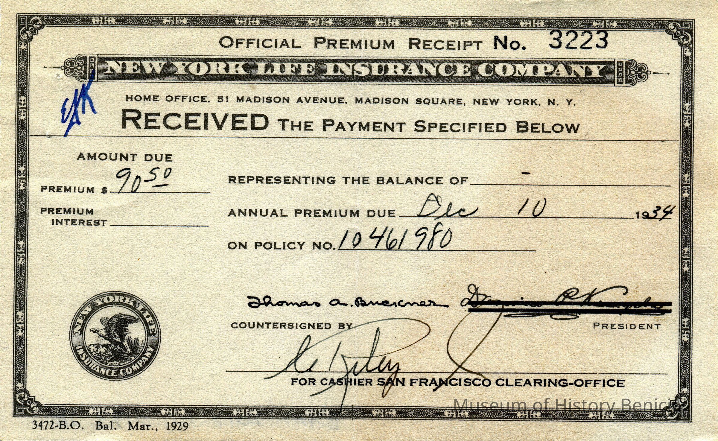Receipts from New York Life Insurance Company from 05/23/1930 to 12/10/1934. Most are for payment of premiums and a few are for dividends paid at the end of a year. All are for Lawerence and Ardella Fish.Collection